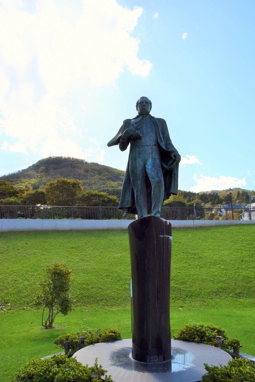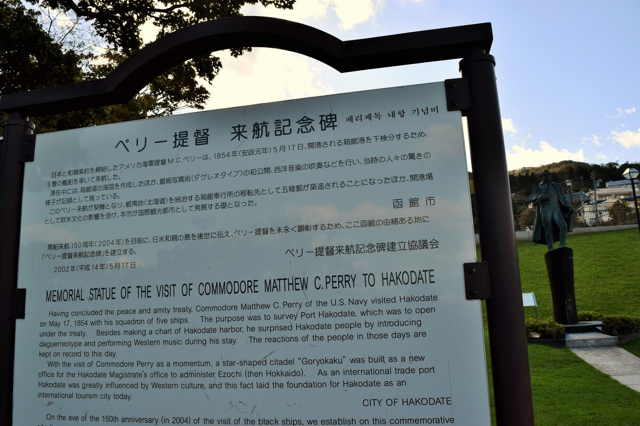 開港後に設けられたアメリカ領事館に近い由緒あるこの地に、平成14年の5月17日(ペリー来航記念日)、ペリー提督来航記念碑が建立されました。