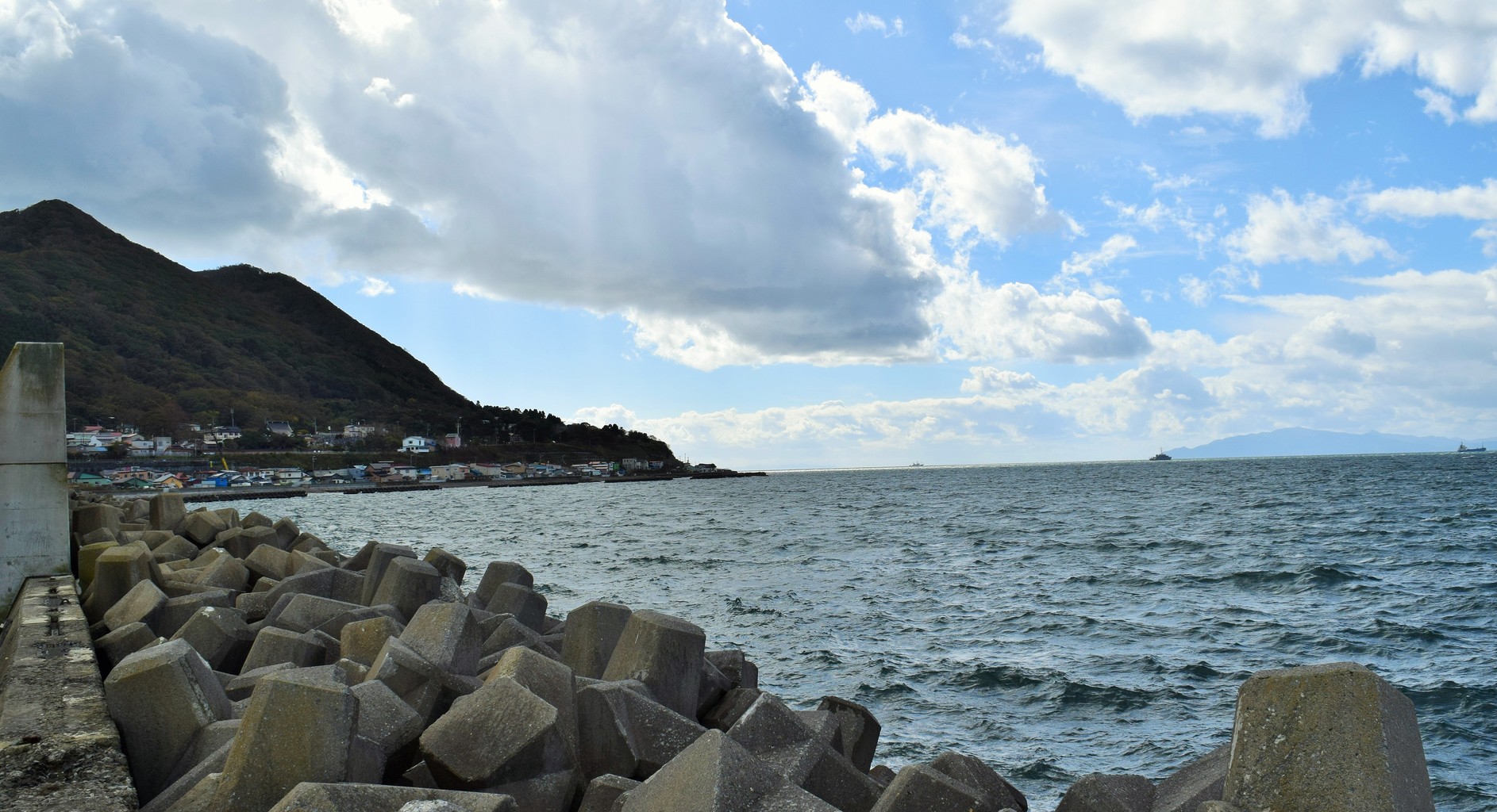 入舟漁港(函館漁港)をはじめとした、海側の地形です。