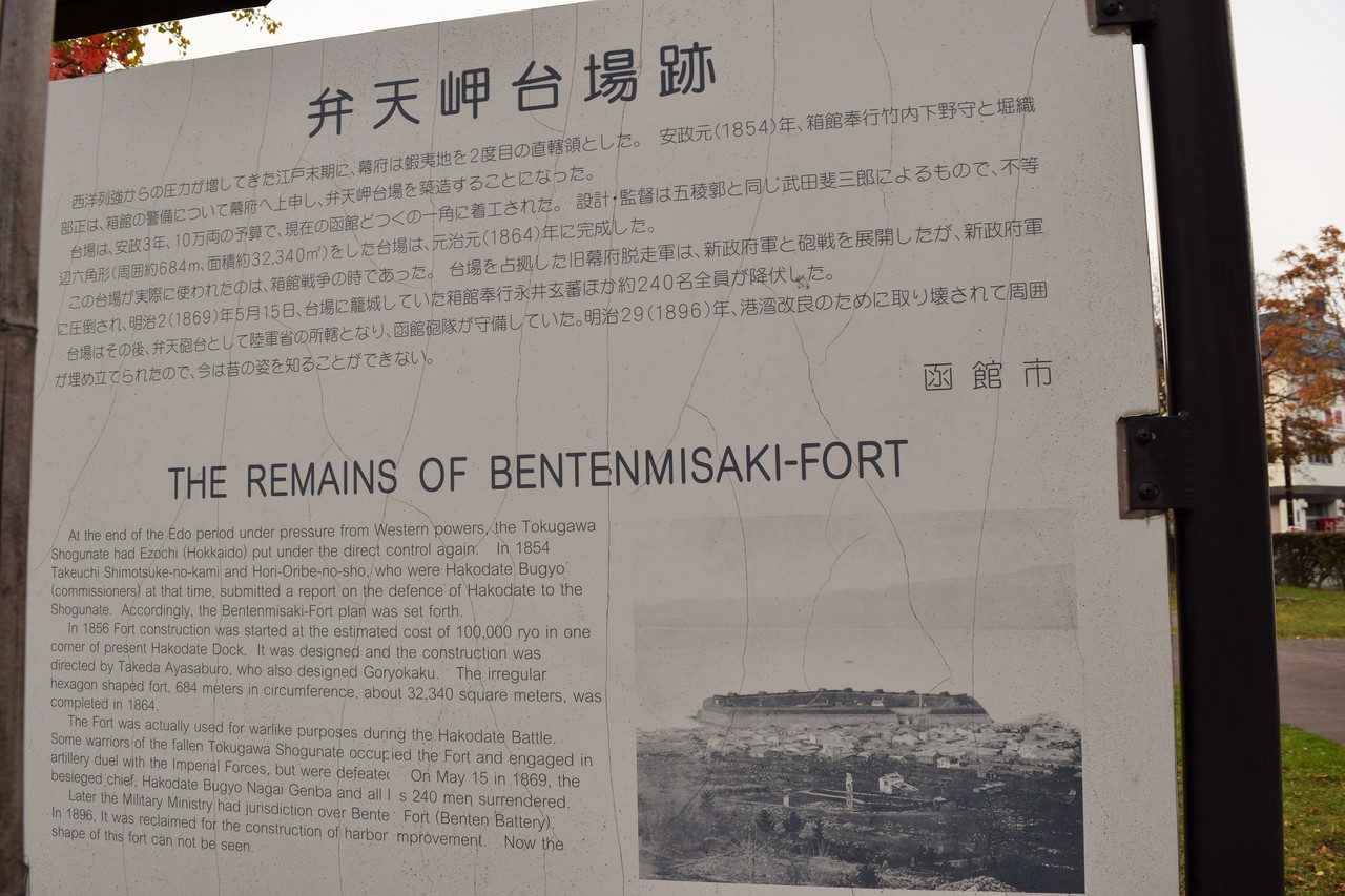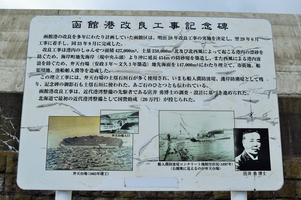 弁天台場は箱館戦争の舞台の一つとなり、その後明治29年に取り壊され石材の一部は函館漁港の石積防波堤に用いられています。