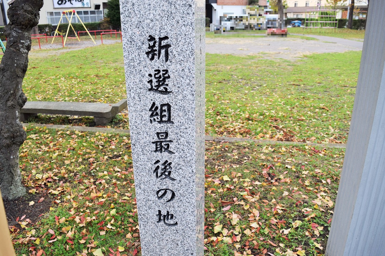 ただの公園ではなく、とても歴史と関わり深いところで新選組最後の地碑があります。