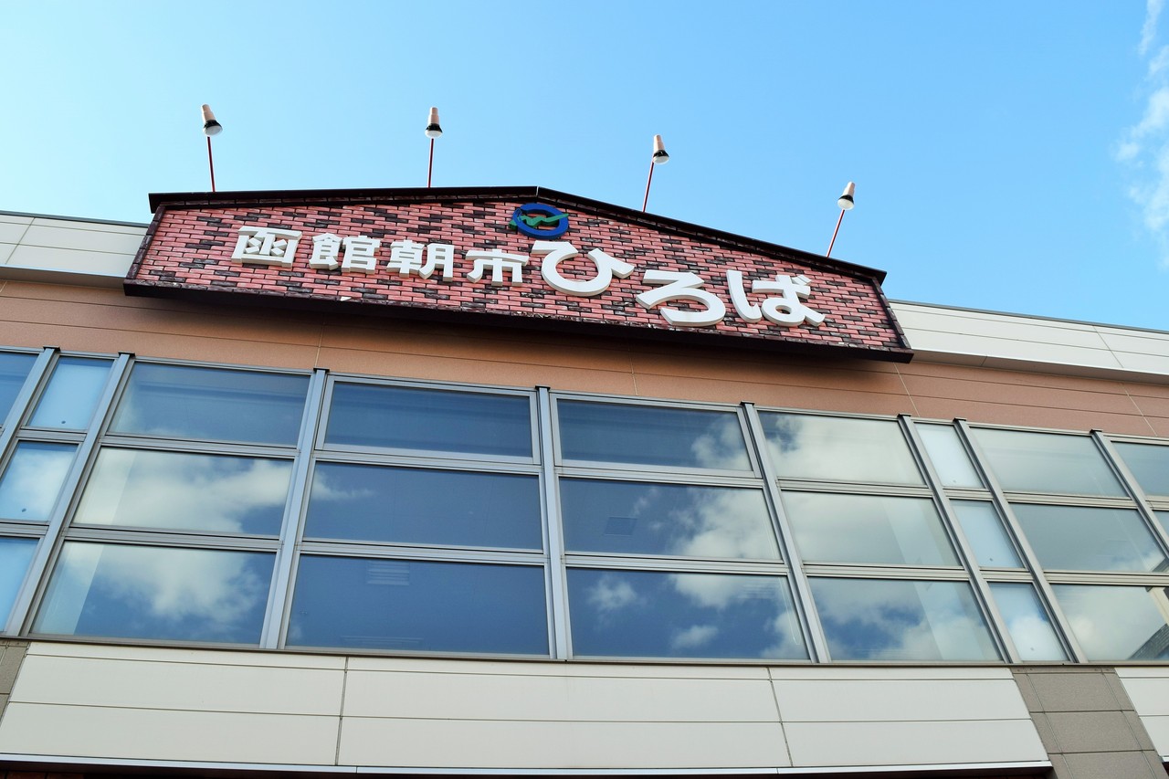 日本語では、「函館朝市ひろば」。
