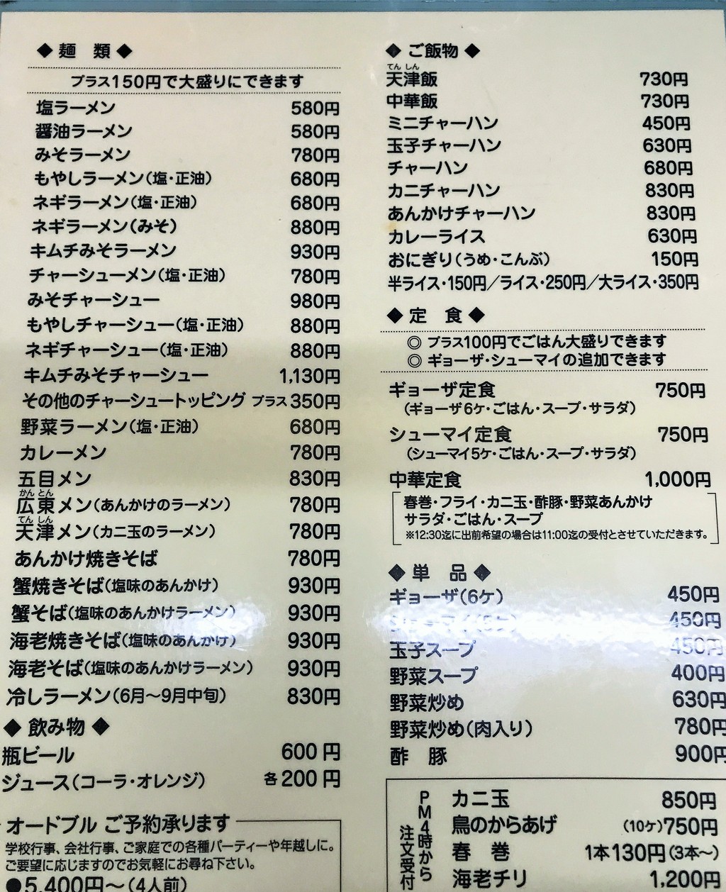 中華料理屋並みのラインナップで、麺類だけでもかなりの数です。