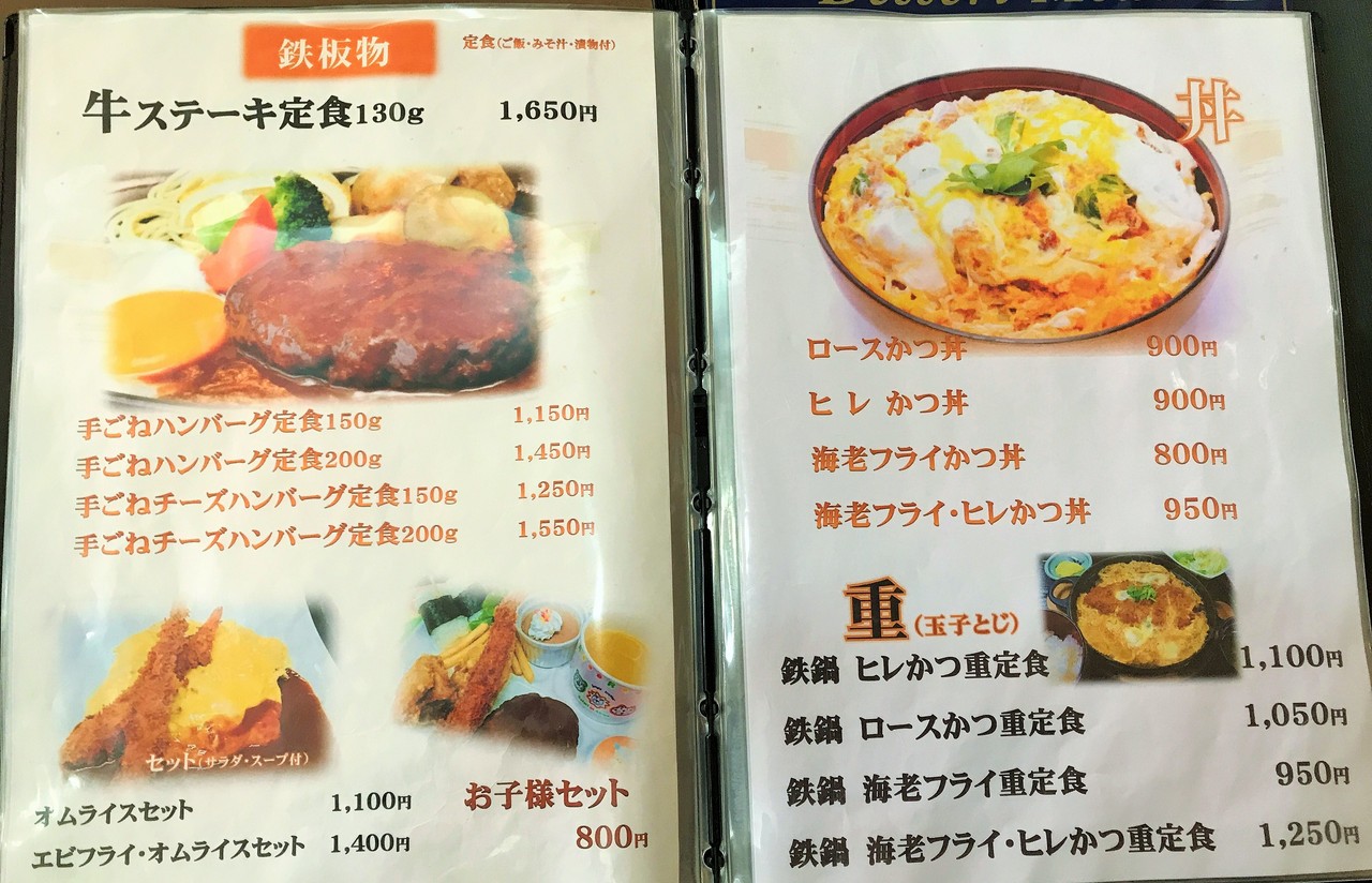 鉄板物と丼と重のメニュー。