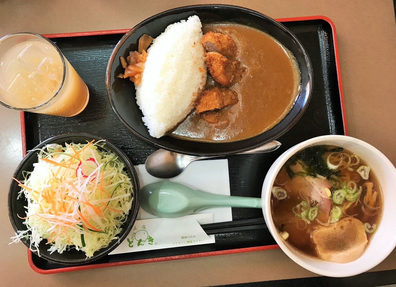 ランチメニューのカツカレー+ハーフラーメンセットが来ちゃいました。
