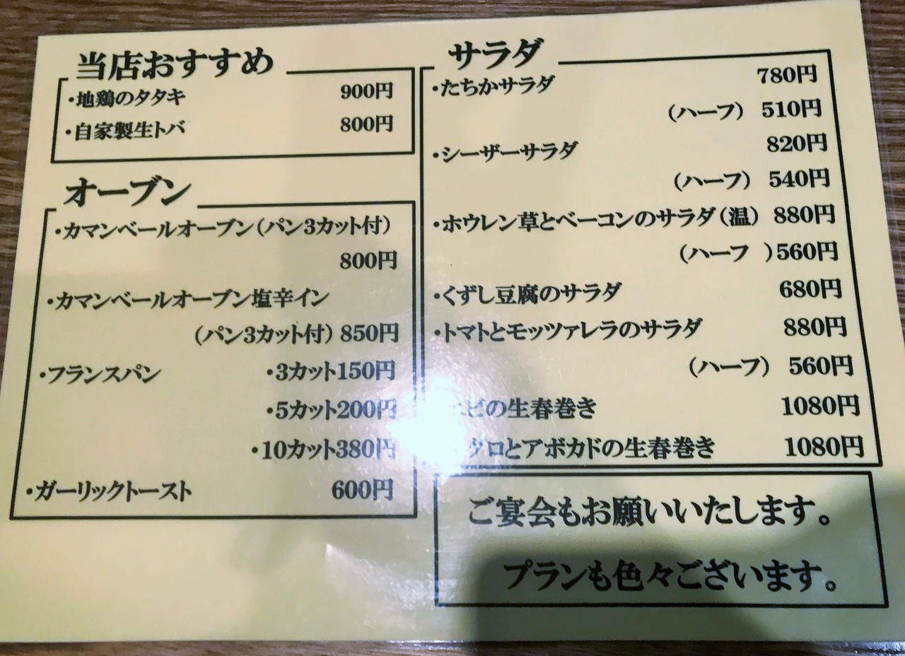 和のメニューだけかと思いきや、ワインに合いそうなメニューもあるんですね。