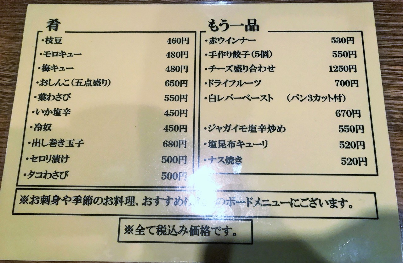ちょっとしたおつまみメニュー。