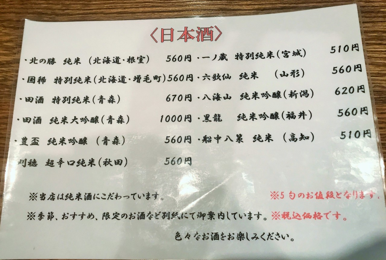 記載は5勺の値段となっております。
