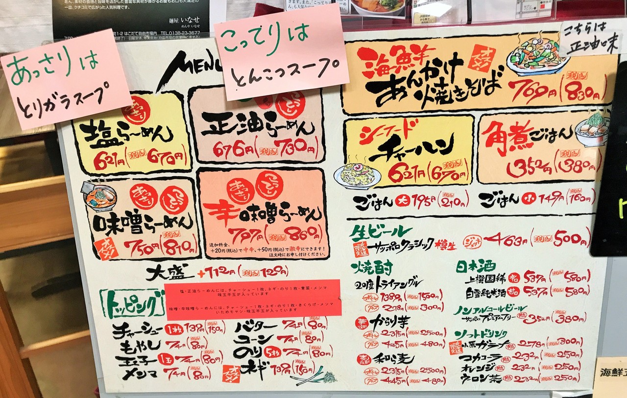 ラーメンは七飯の名店、松笠を思わせるあっさりorこってり系+あんかけ焼きそば。