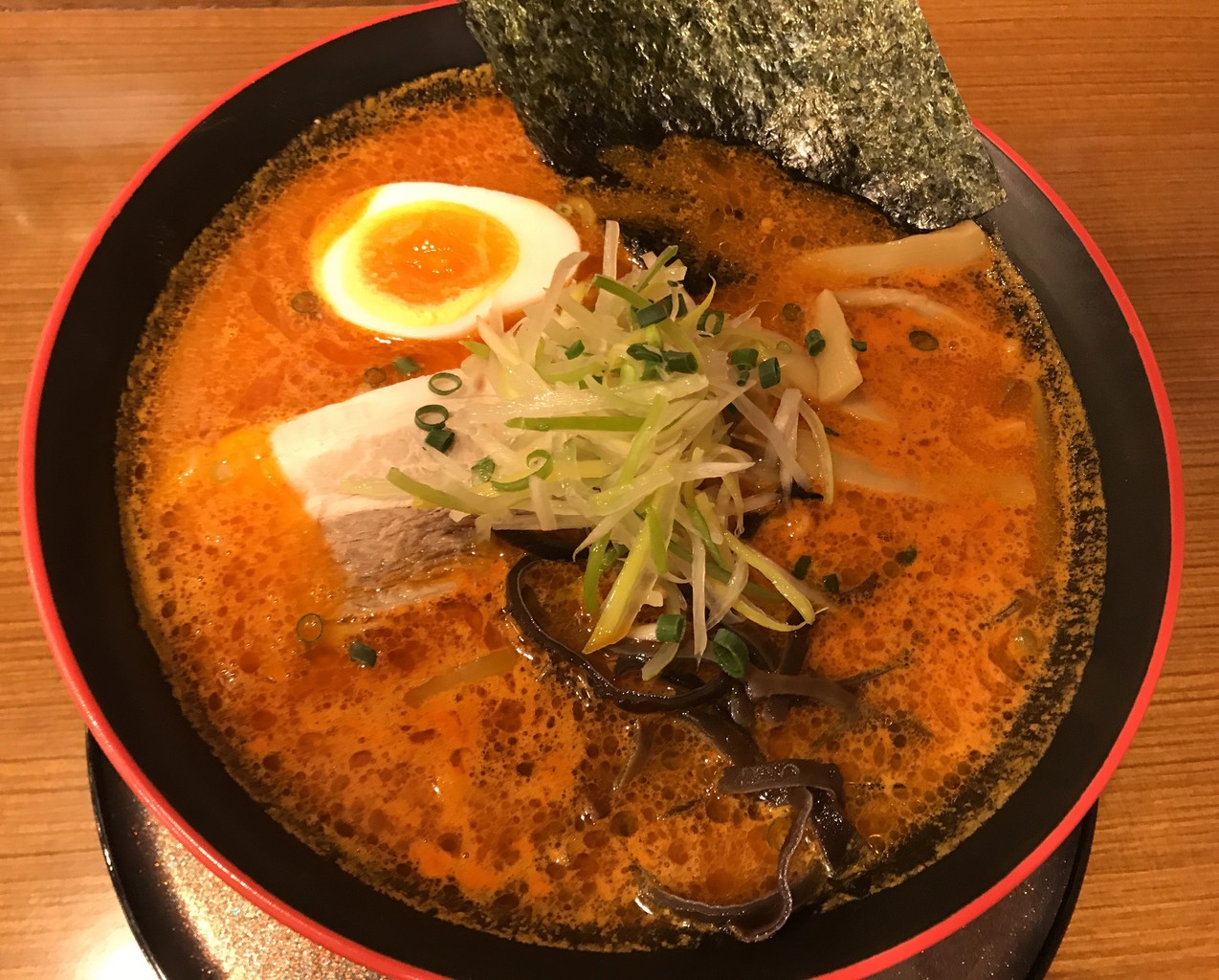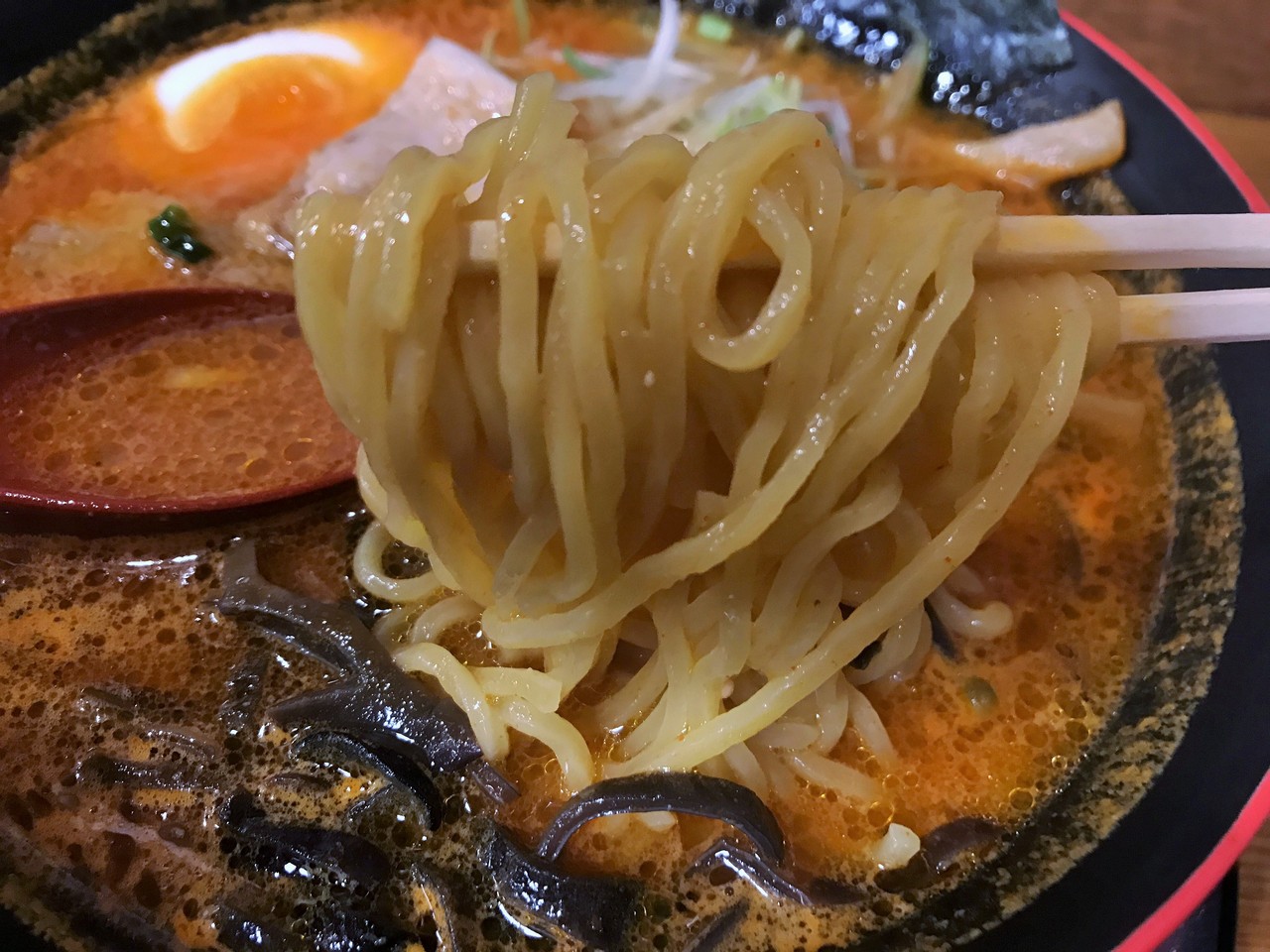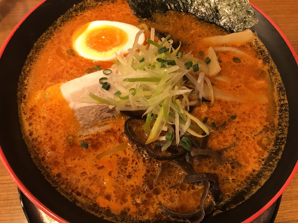 頼んだのは、とんこつスープのこってり辛味噌らーめんでした。
