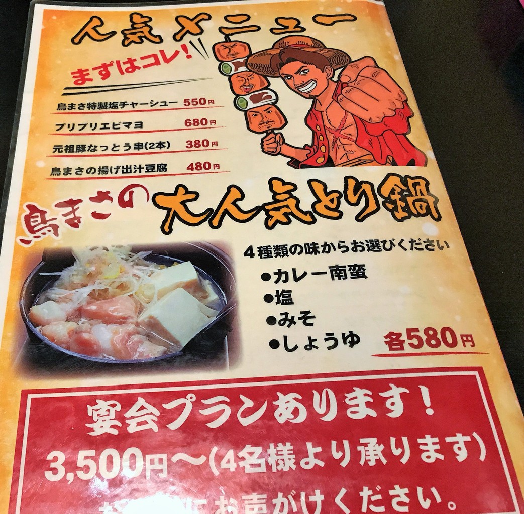 鳥まさという名前ですが、鳥ごり押しの鳥専門店ではないです。