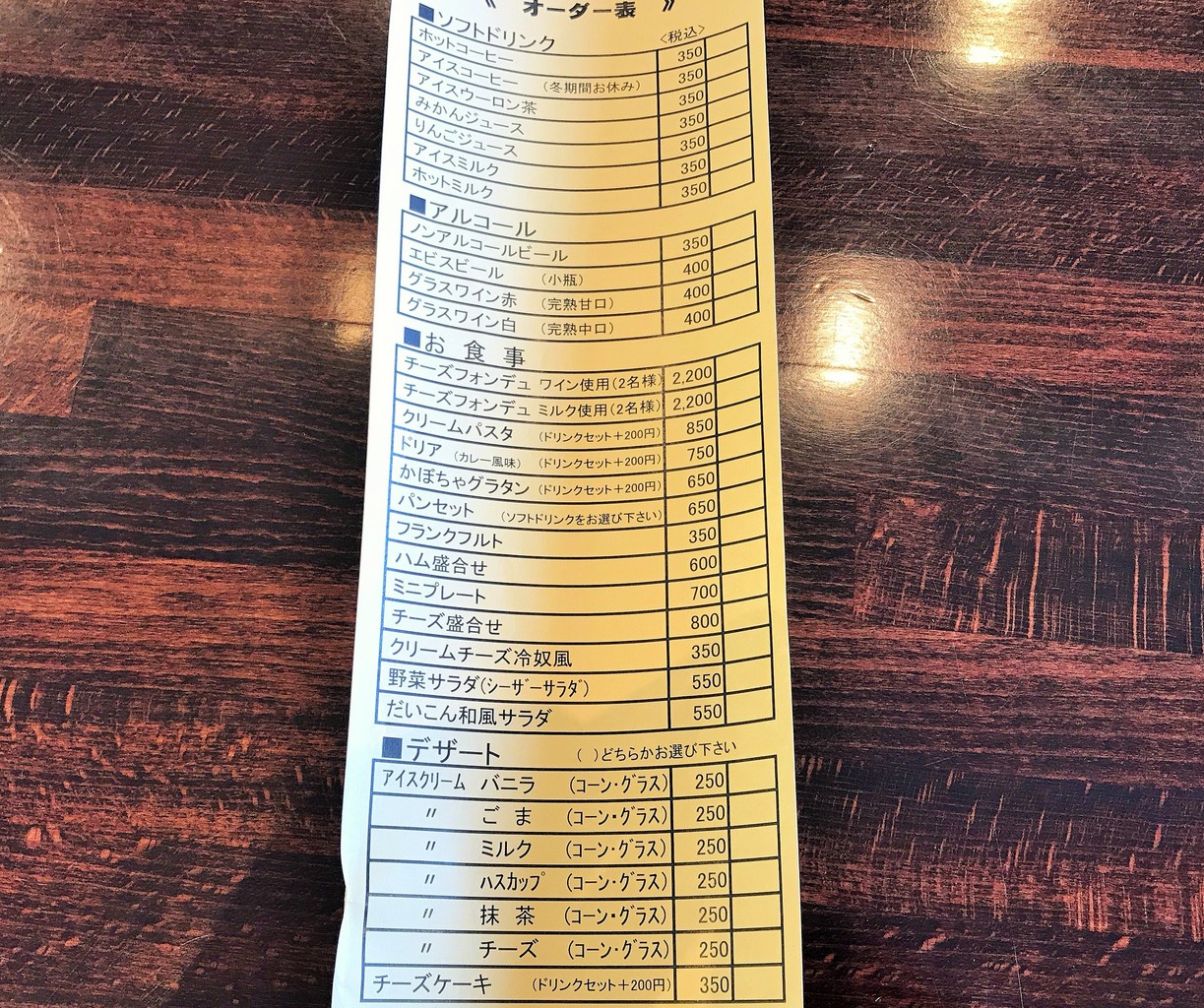 席に座ったらオーダー表に記入をして、レジに持っていき前払い精算です。