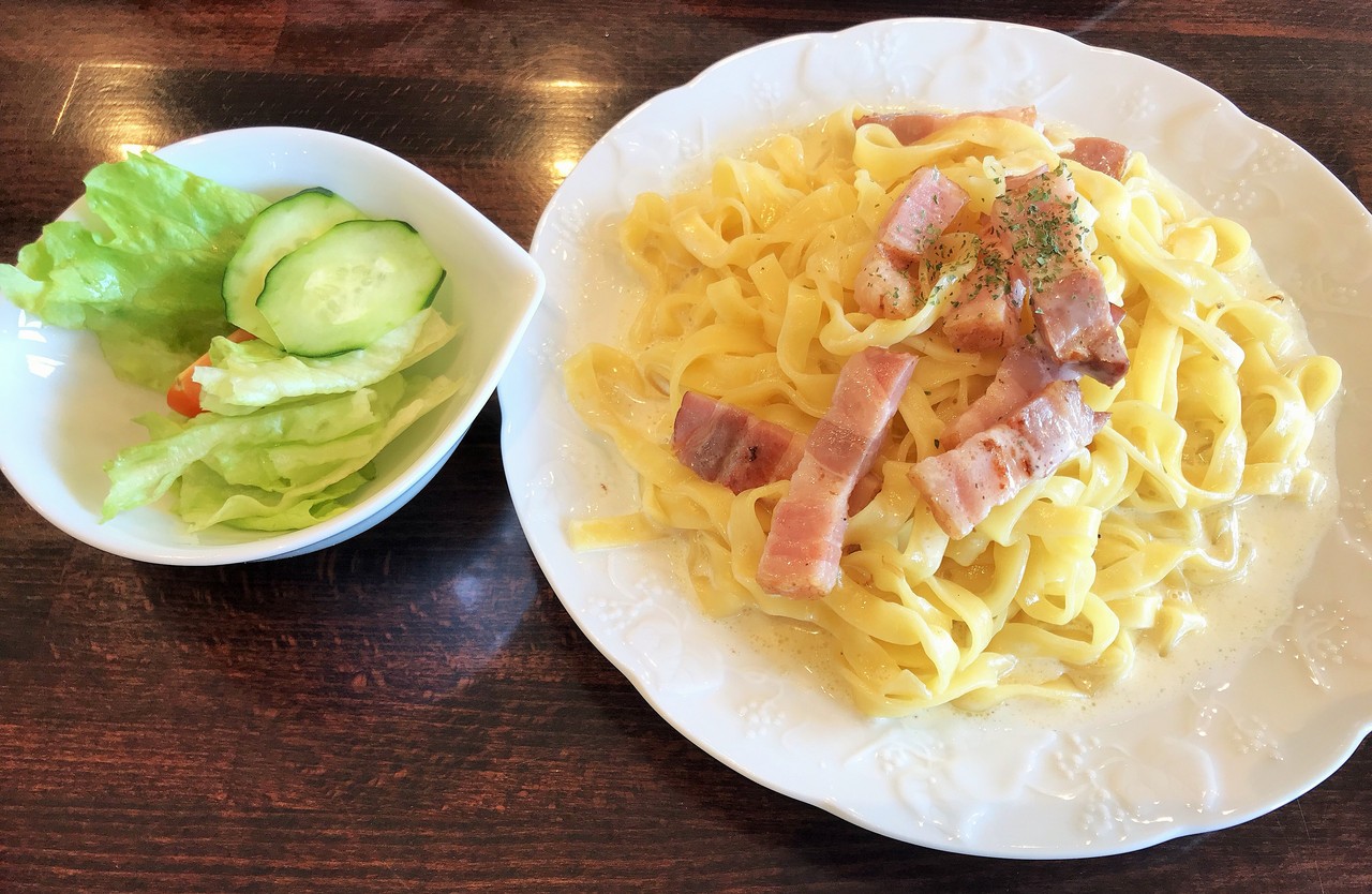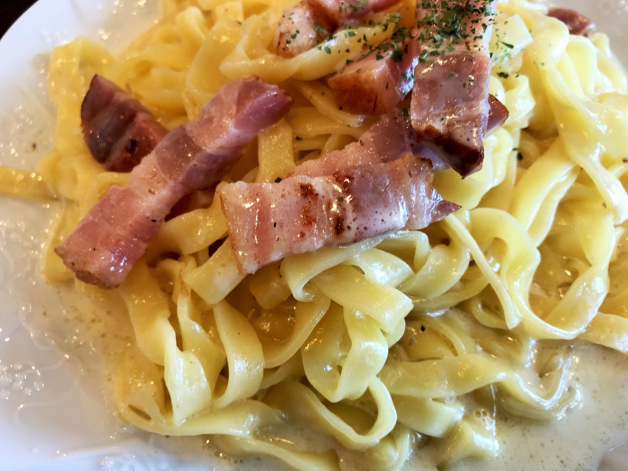 パスタよりパスタを引き立てるクリームやベーコンが主役のよう。