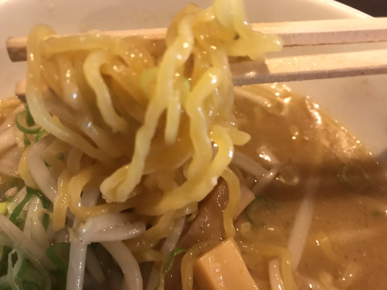 なんといっても麺が「ちぢれ」で、食感も大げさなくらい「ちぢれ」感がある歯ごたえのある麺が超絶好みでした。
