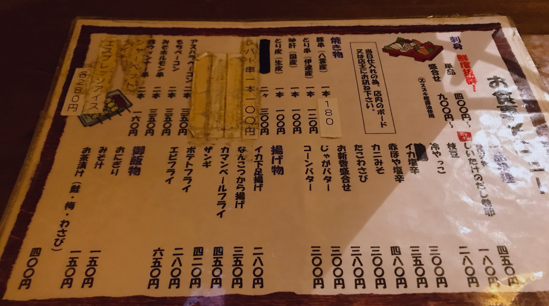 いつも手書きで書かれたおすすめメニューばかり頼んでしまい、忘れられがちになっていた通常メニューが上の画像です。
