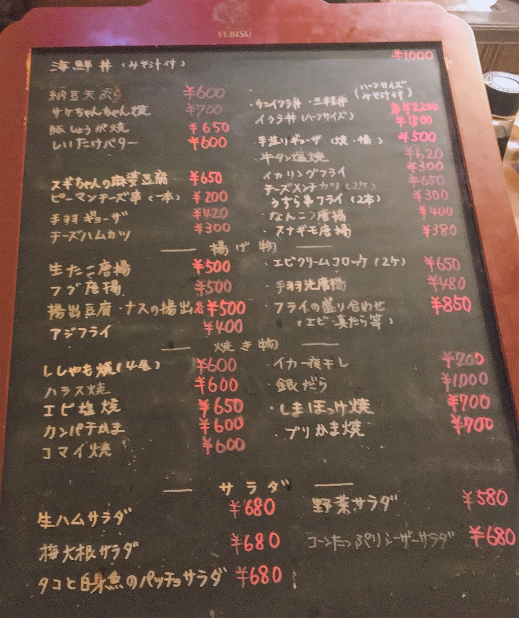 刺身以外のビールに合うような おつまみメニューが並びます。