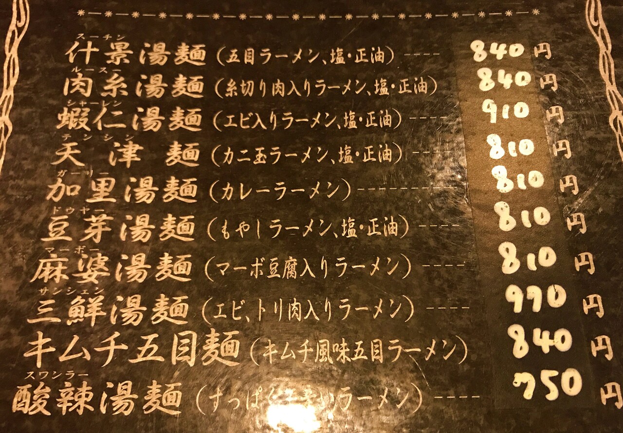 いつも条件反射のように味噌ラーメンかワンタンメンを頼む自分ですが、ラーメンメニューだけでも豊富で興味のあるラーメンが多々ありました。