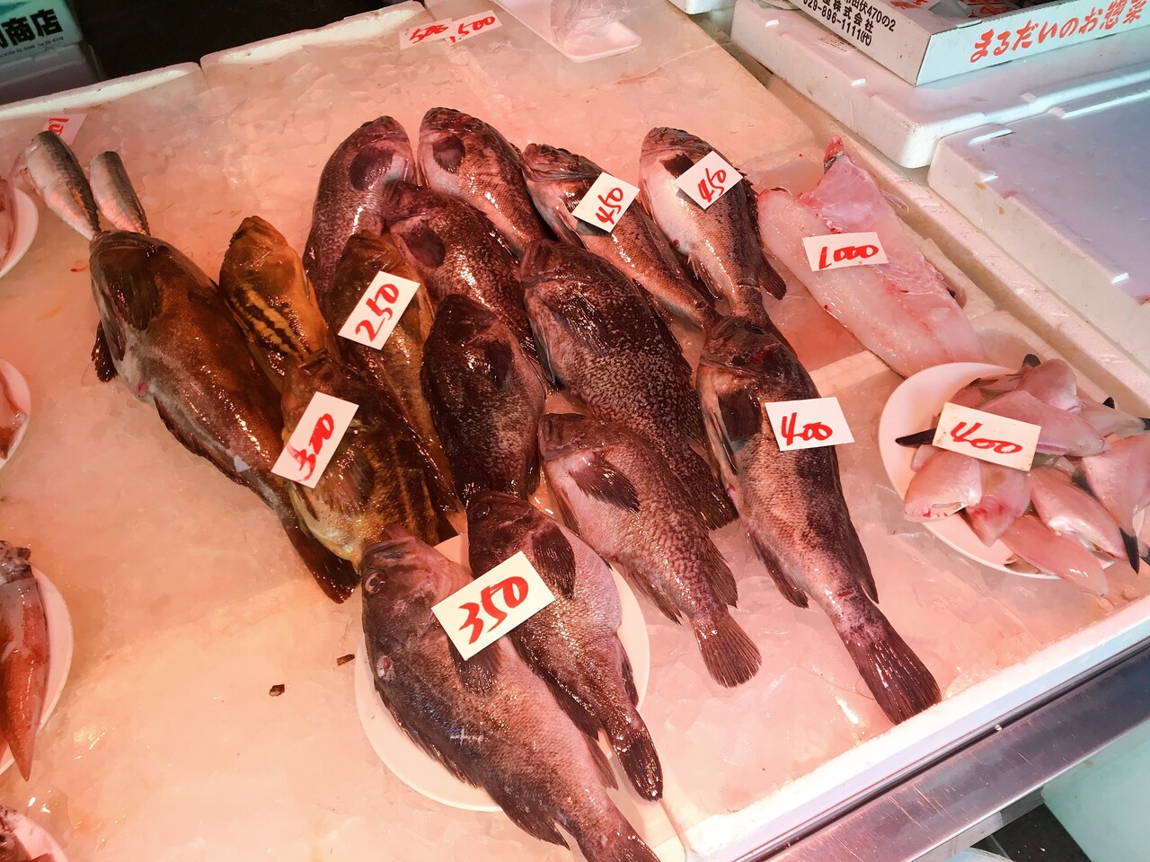 遅くても夕方前、できれば昼頃までには訪れて、魚の豊富なラインナップを楽しみたいところ。