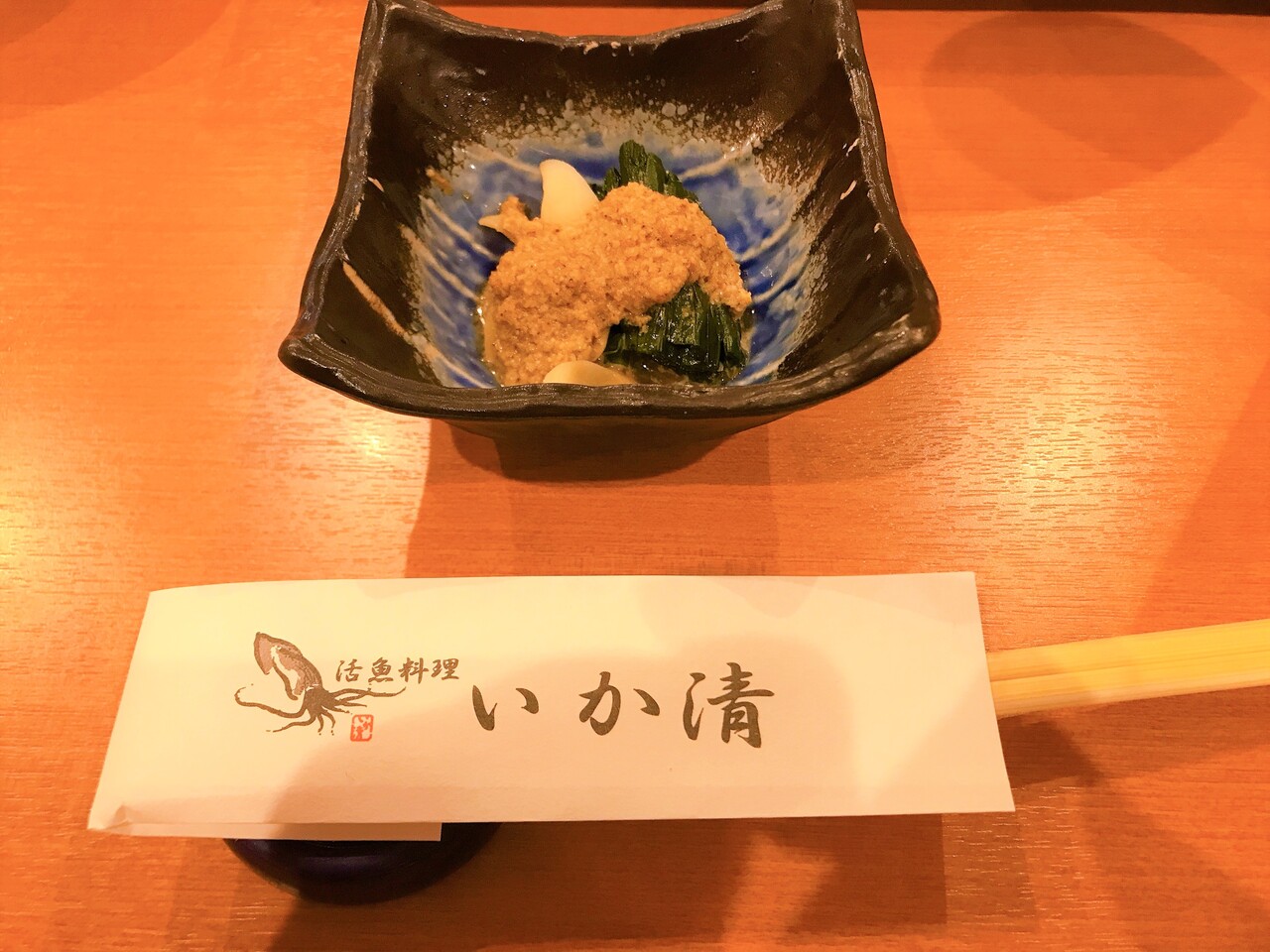 まずは、イカとほうれん草の胡麻和えです。