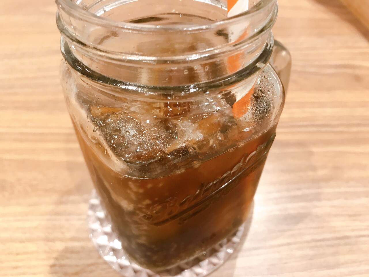 ジャムが入っていそうな大きな瓶と紙のストロー。