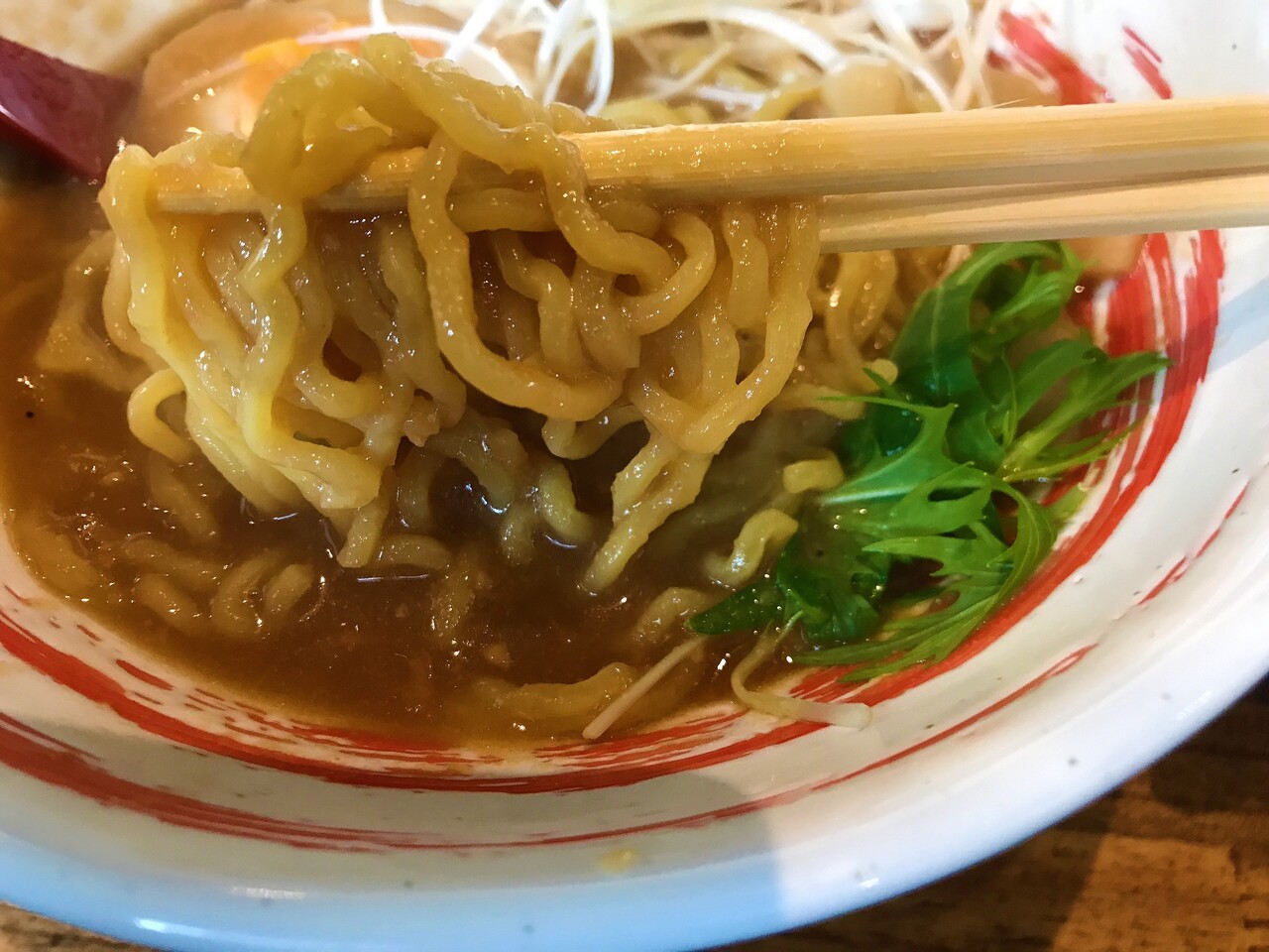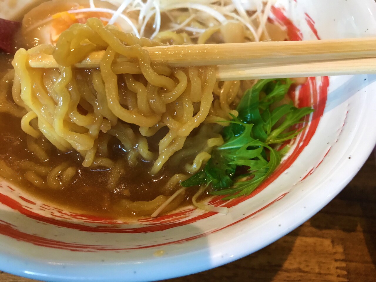 スープの濃度に対し、太めの力強い麺で負けていません。