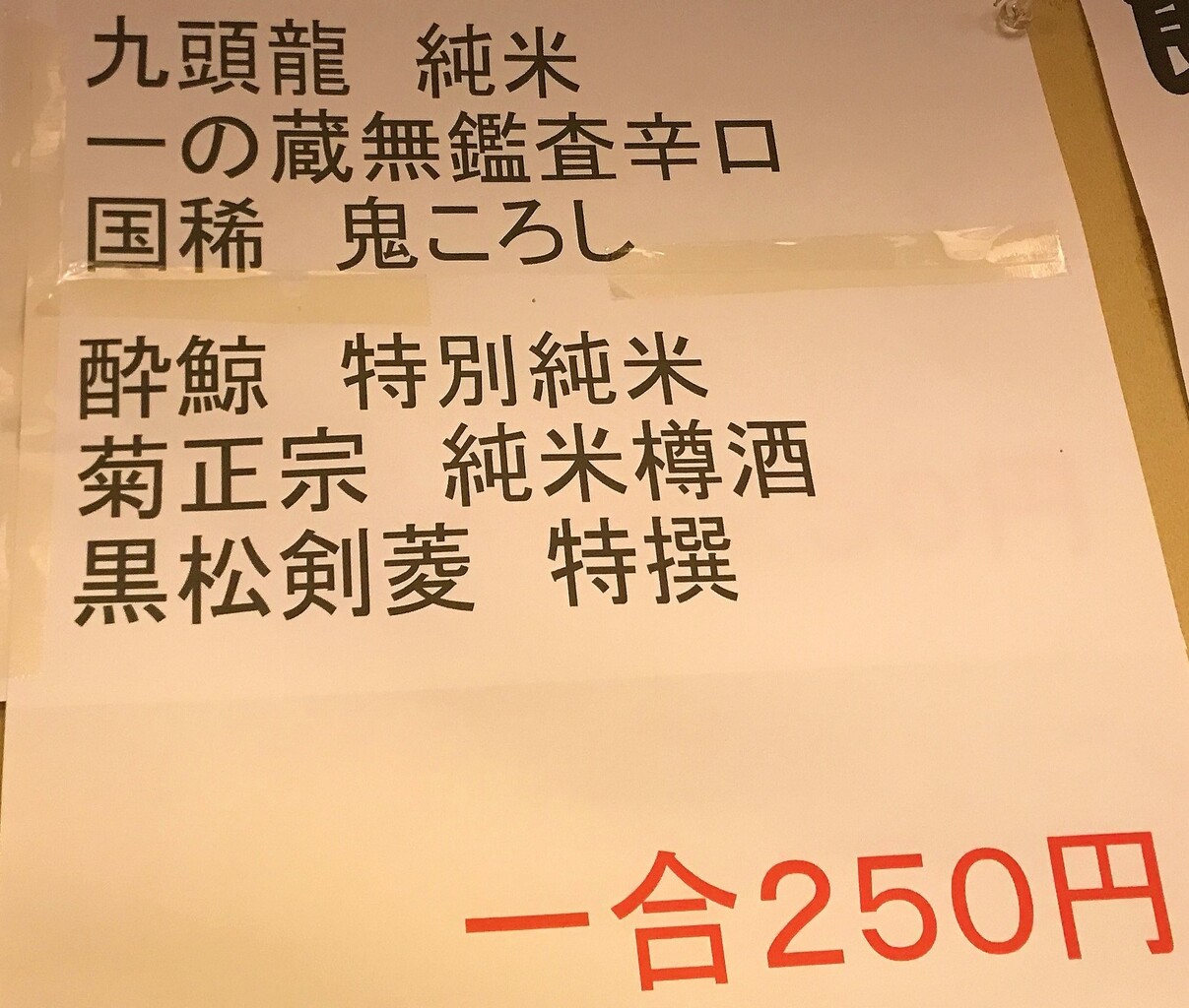 この他に日本酒飲み比べなるものがあり、好きな4種類を選んで400円と試飲のような値段でした。