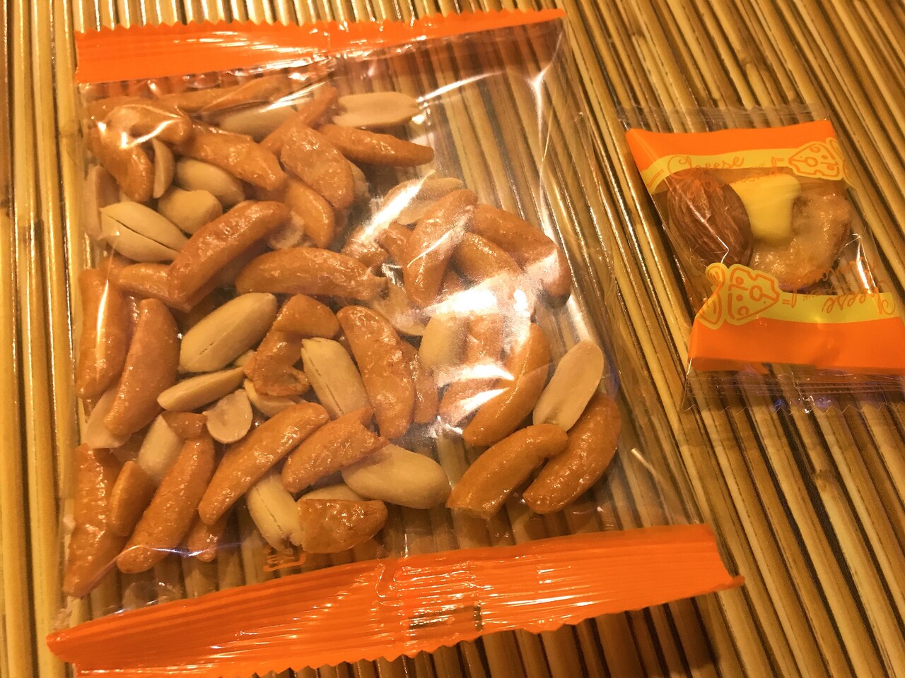 ちょっとだけ袋の大きな柿ピーと、チーズアーモンド。