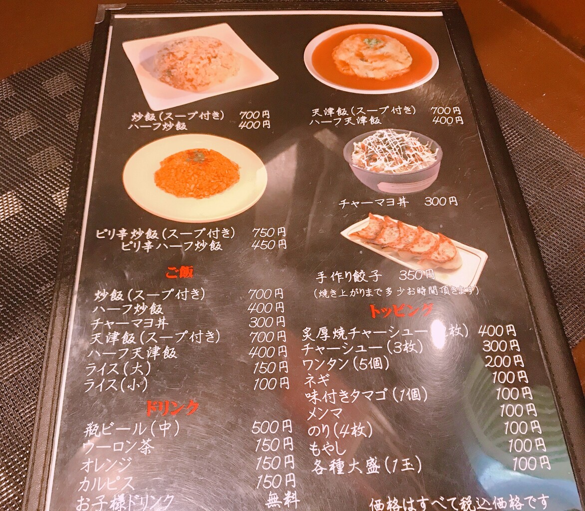 天津飯があるのが、なんか意外な感じでしょうか。