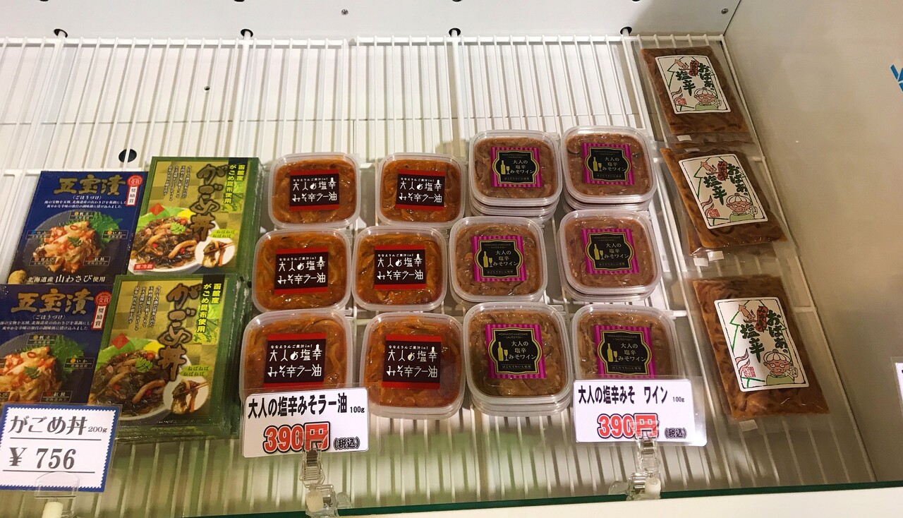 お土産コーナーに売られている、大人の塩辛みそワイン。