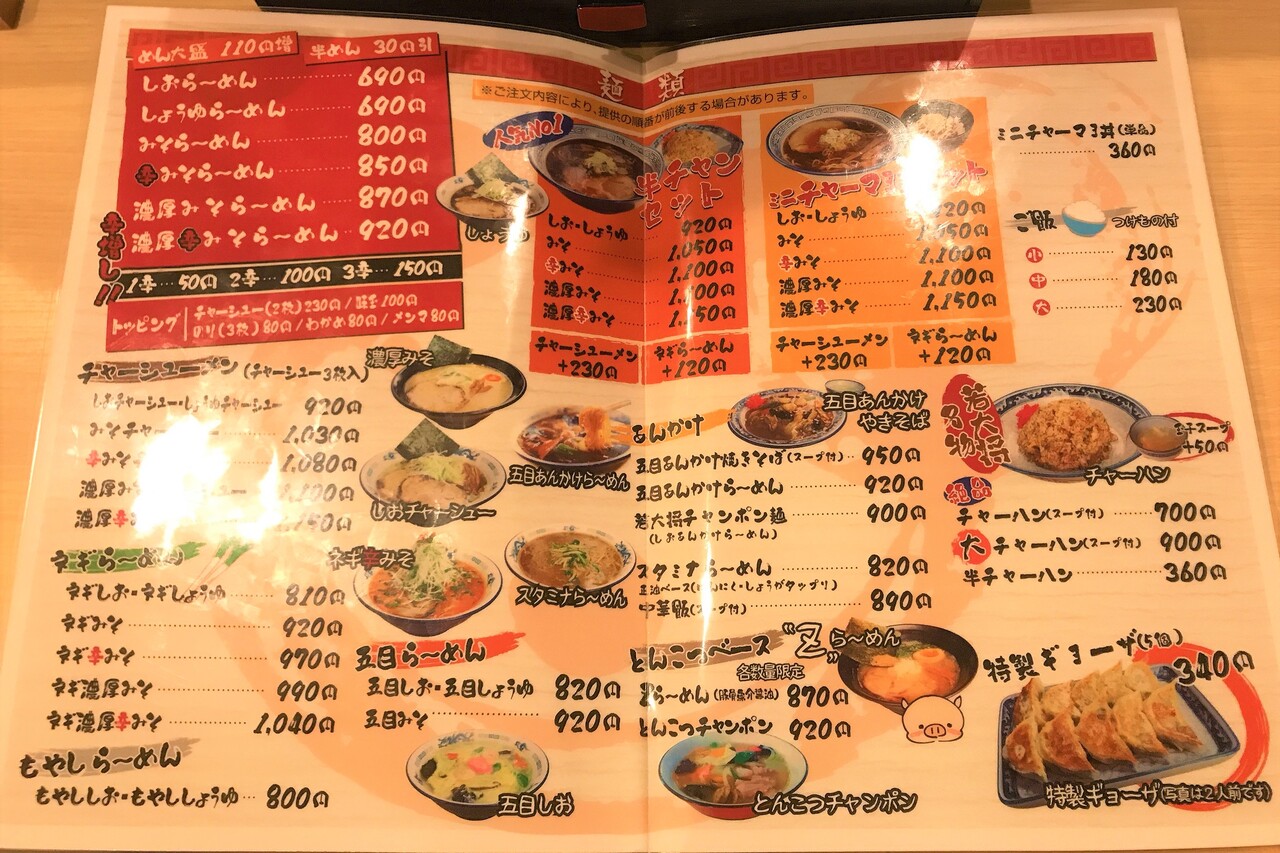 五目らーめんや、チャンポンもあったりと種類は豊富。