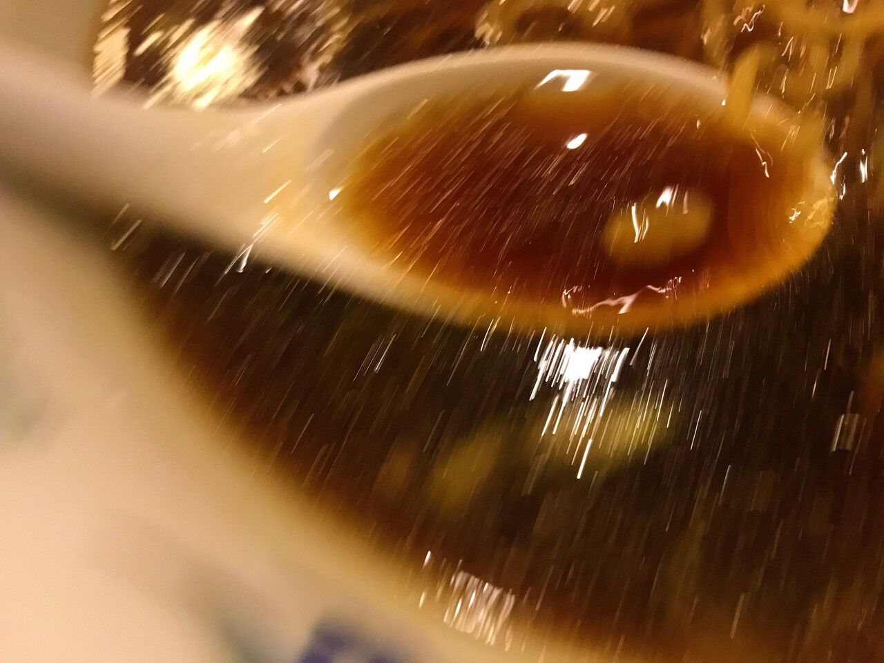 もう早くスープを飲み干したくて、高速でレンゲを口に運ぶの図。