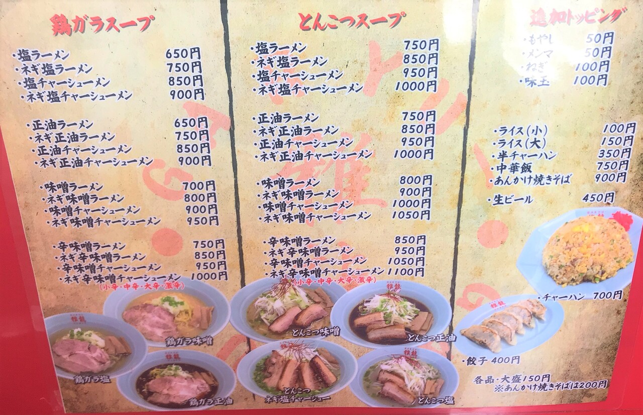 各ラーメンメニューは鶏ガラスープと、とんこつスープが選べるようです。
