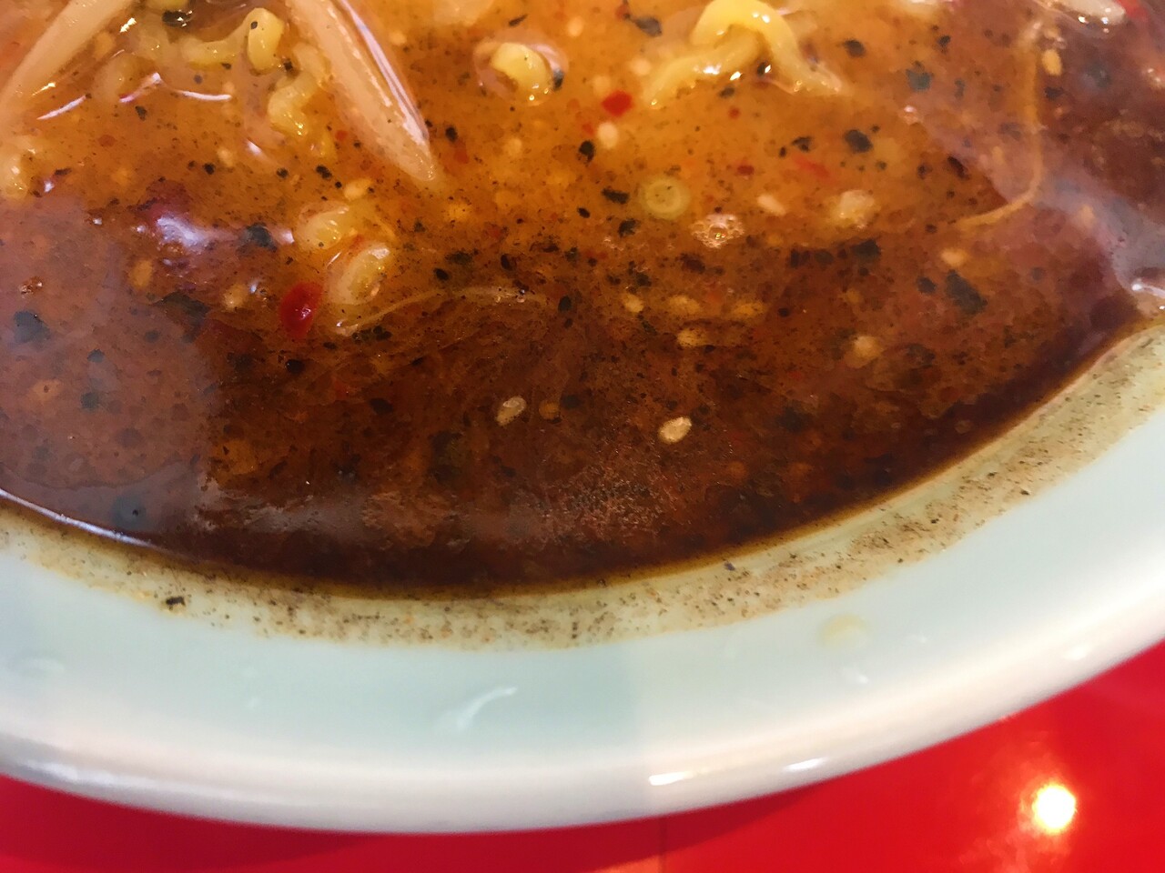 唐辛子満載の、真っ赤なラーメンが出てくると思いきや黒いんです。