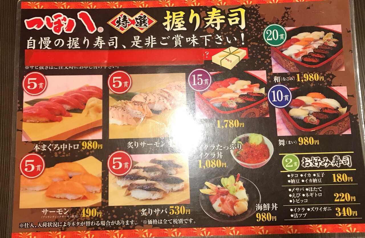 寿司メニュー。
