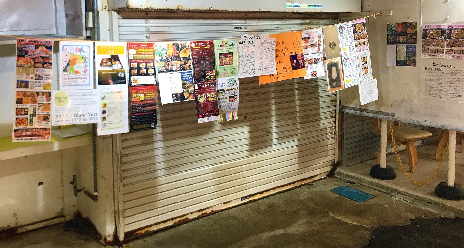近づいてみると、色々なお店のテイクアウトのポスターがずらり。