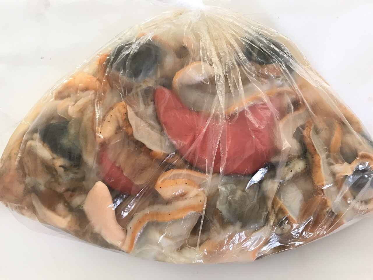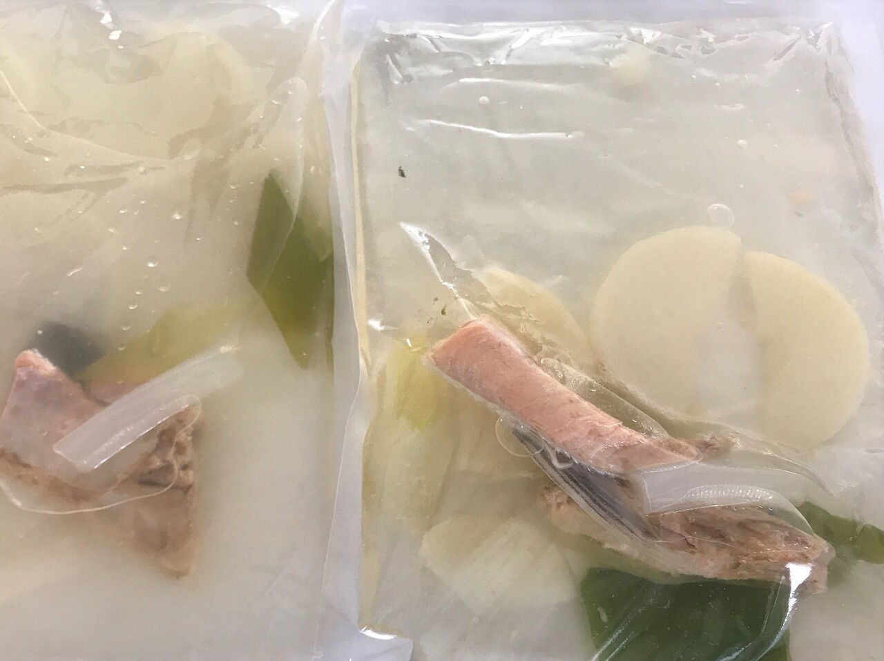 いつものように今晩のおかずと冷凍庫にストックして置くものを探していると、さけ三平汁20万円の値札。