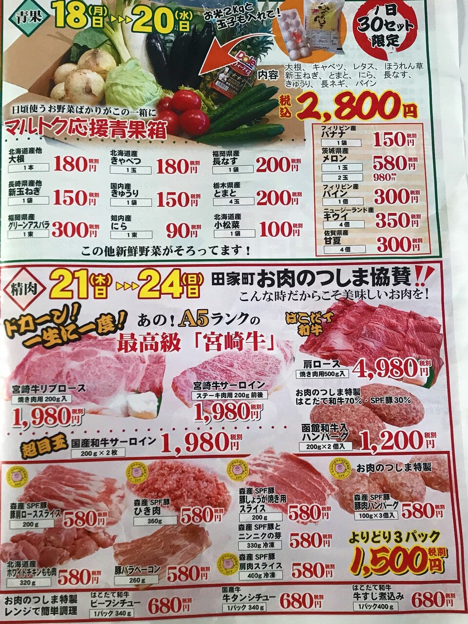 最後は野菜の格安販売と、田家町のお肉のつしま協賛販売。