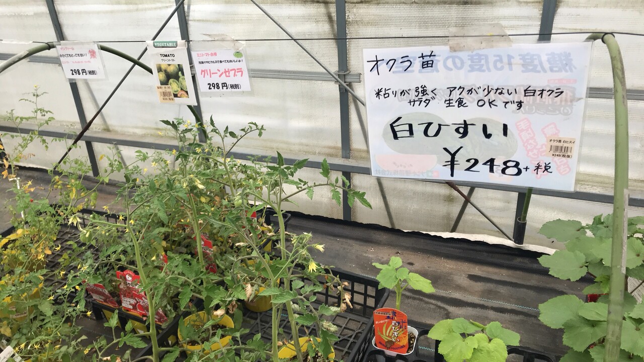 ホームセンター等では、時期的に野菜苗の姿が徐々に減っている感じがありますが、ここにはたくさんの苗がまだありました。