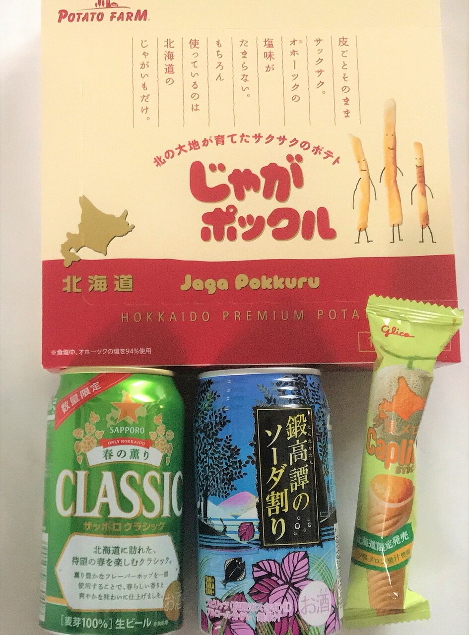 お酒2本、カプリコ1本、じゃがポックル1箱の組み合わせが多かったですが、お酒なしバージョンもありました。