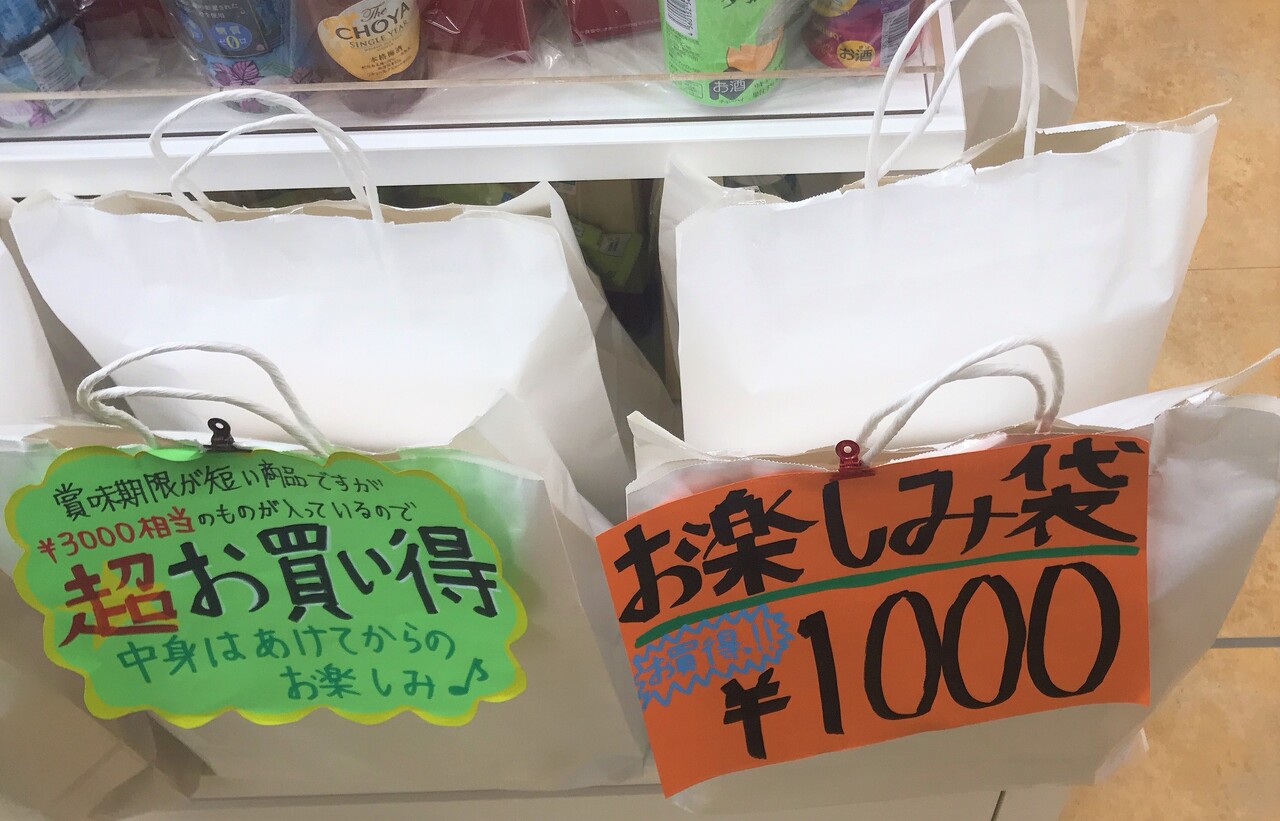 函館駅前の松岡商店で、賞味期限近い商品を袋詰めにして格安販売。