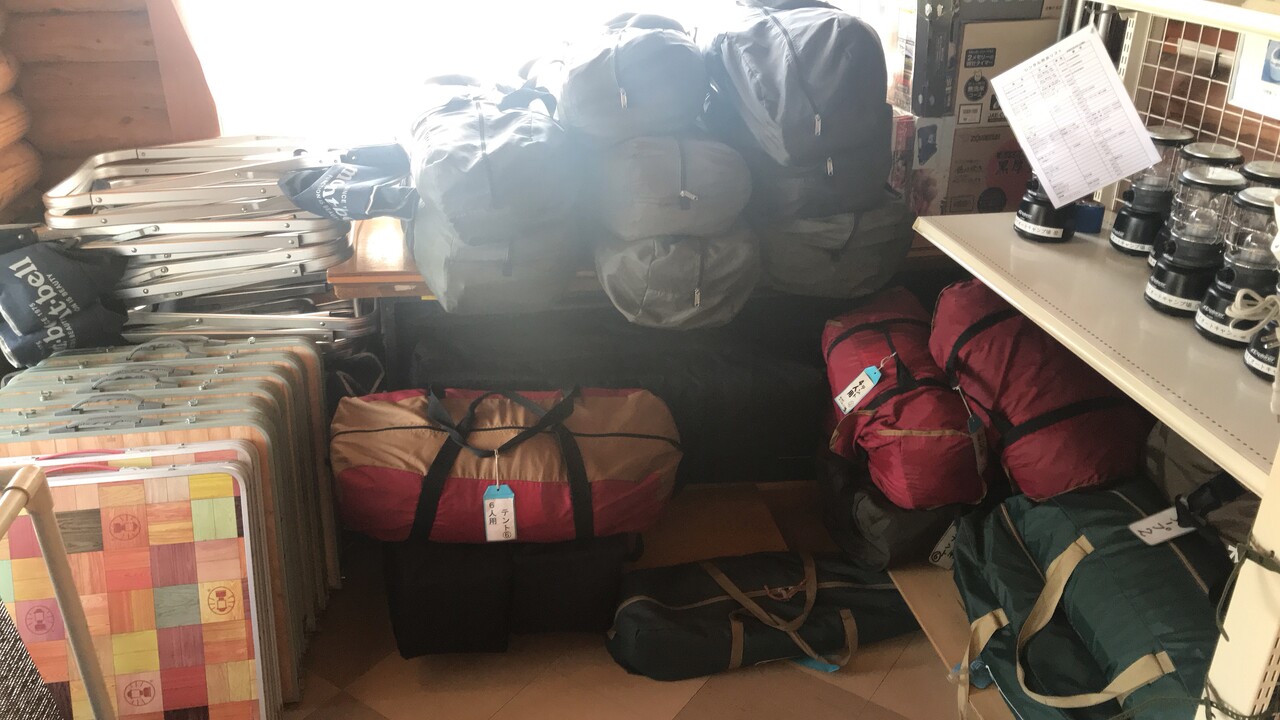 テントや、イス、銀マットの貸し出しもあります。