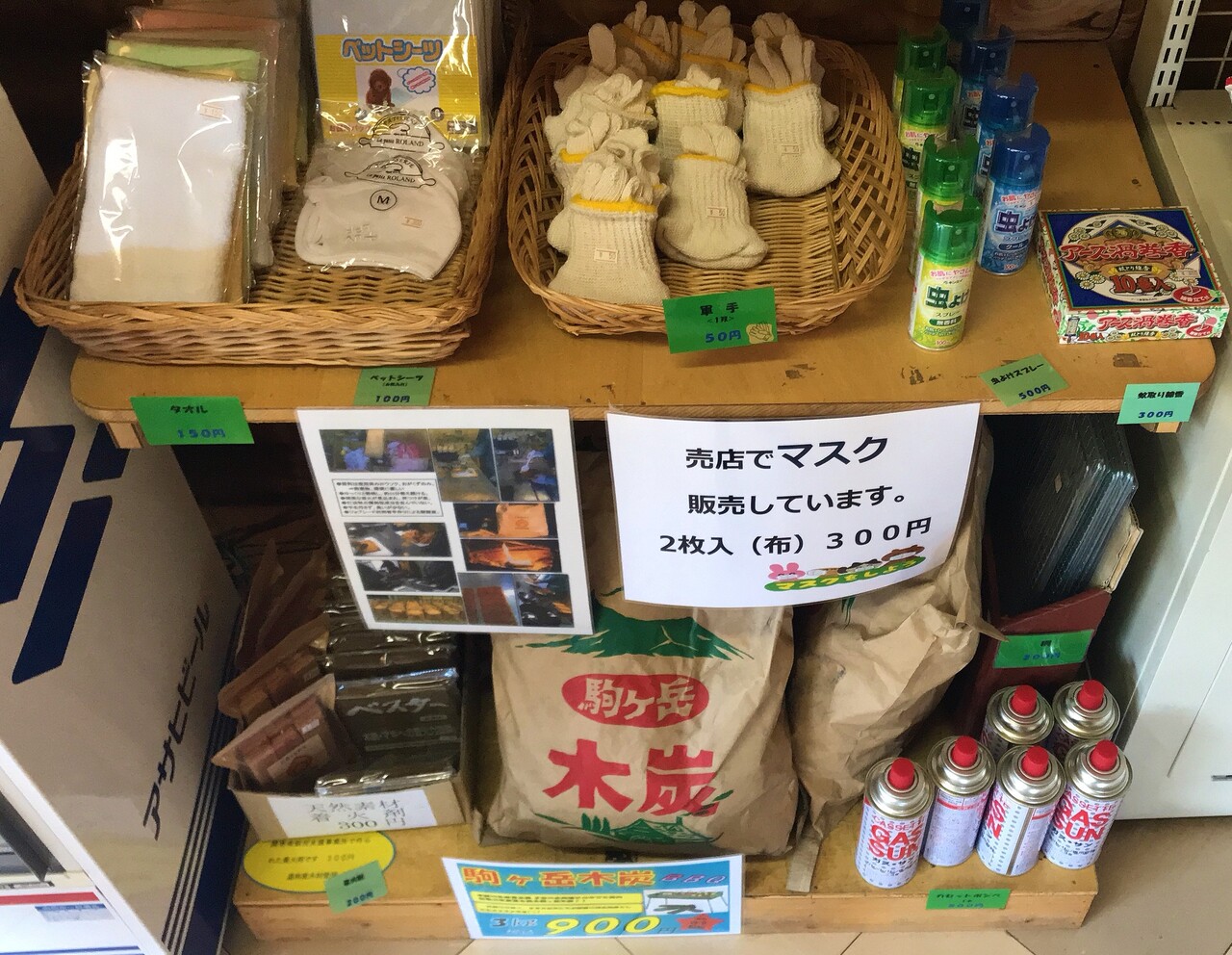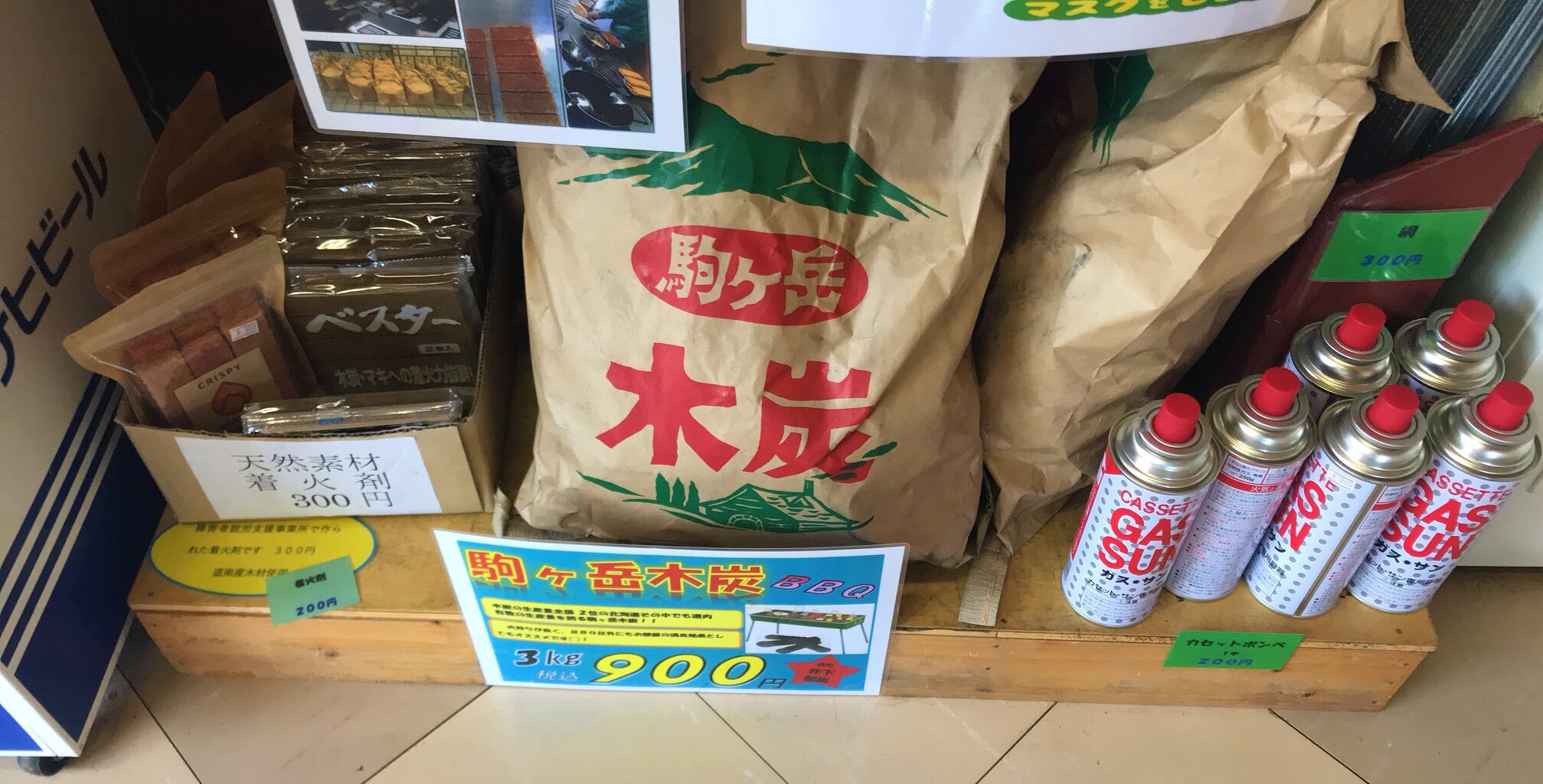 木炭や、着火剤、軍手や虫よけまであります。