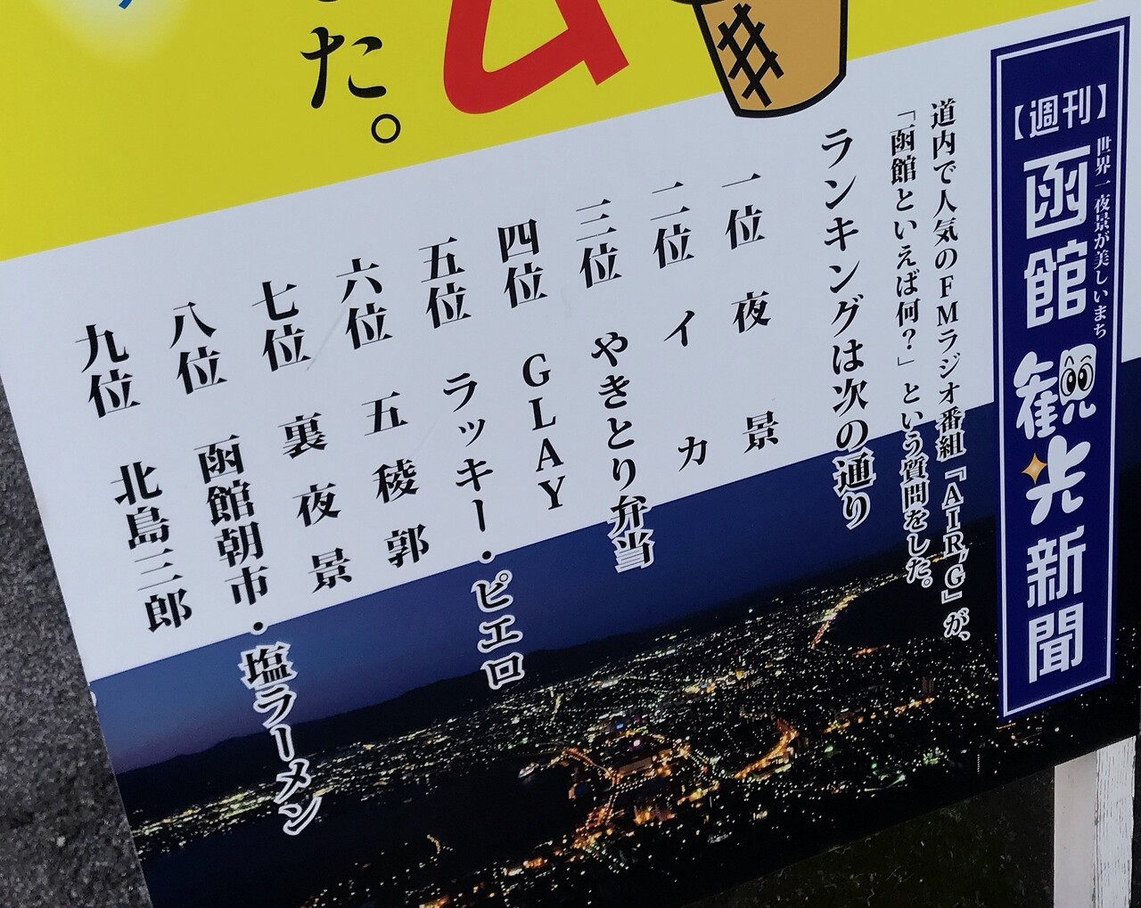 AIR-G’の「函館といえば・・・ランキング!」第10位、きくちのソフトクリームがランクインしてました看板の前で1枚。