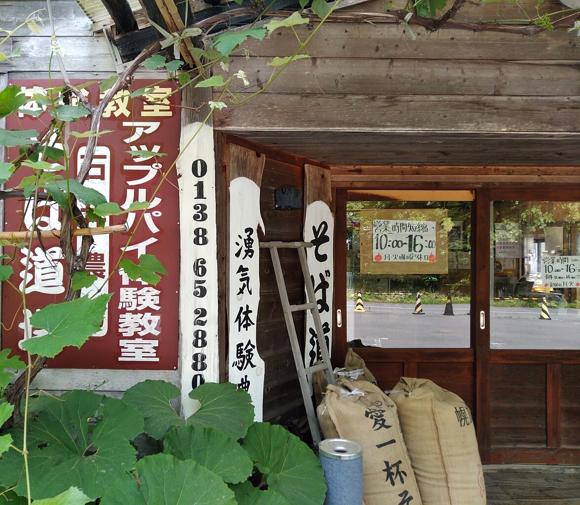 「そば道場」とか「アップルパイ体験教室」と書いていますが、事前予約制でそば打ち体験や、アップルパイ作り体験ができるようです。