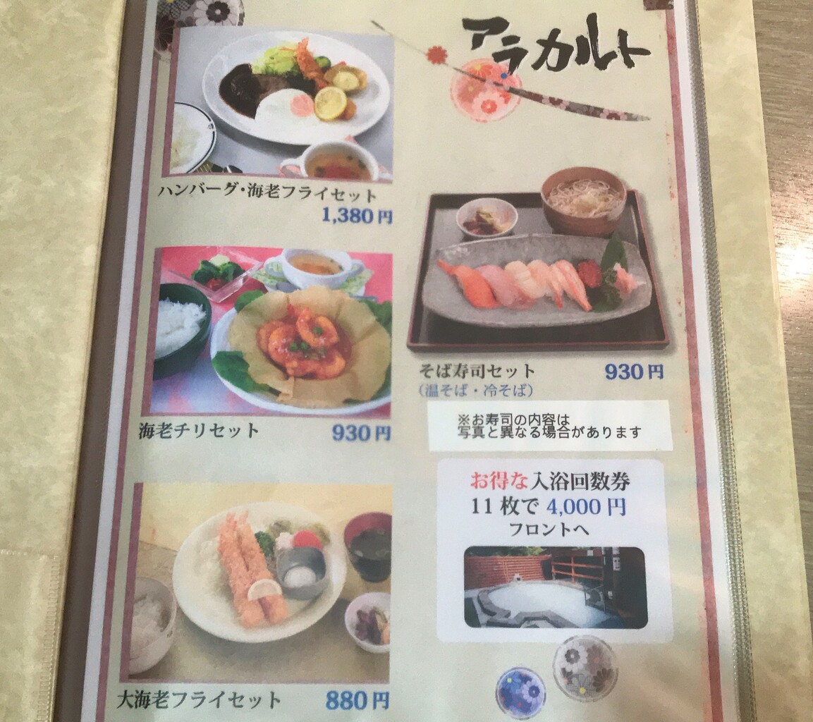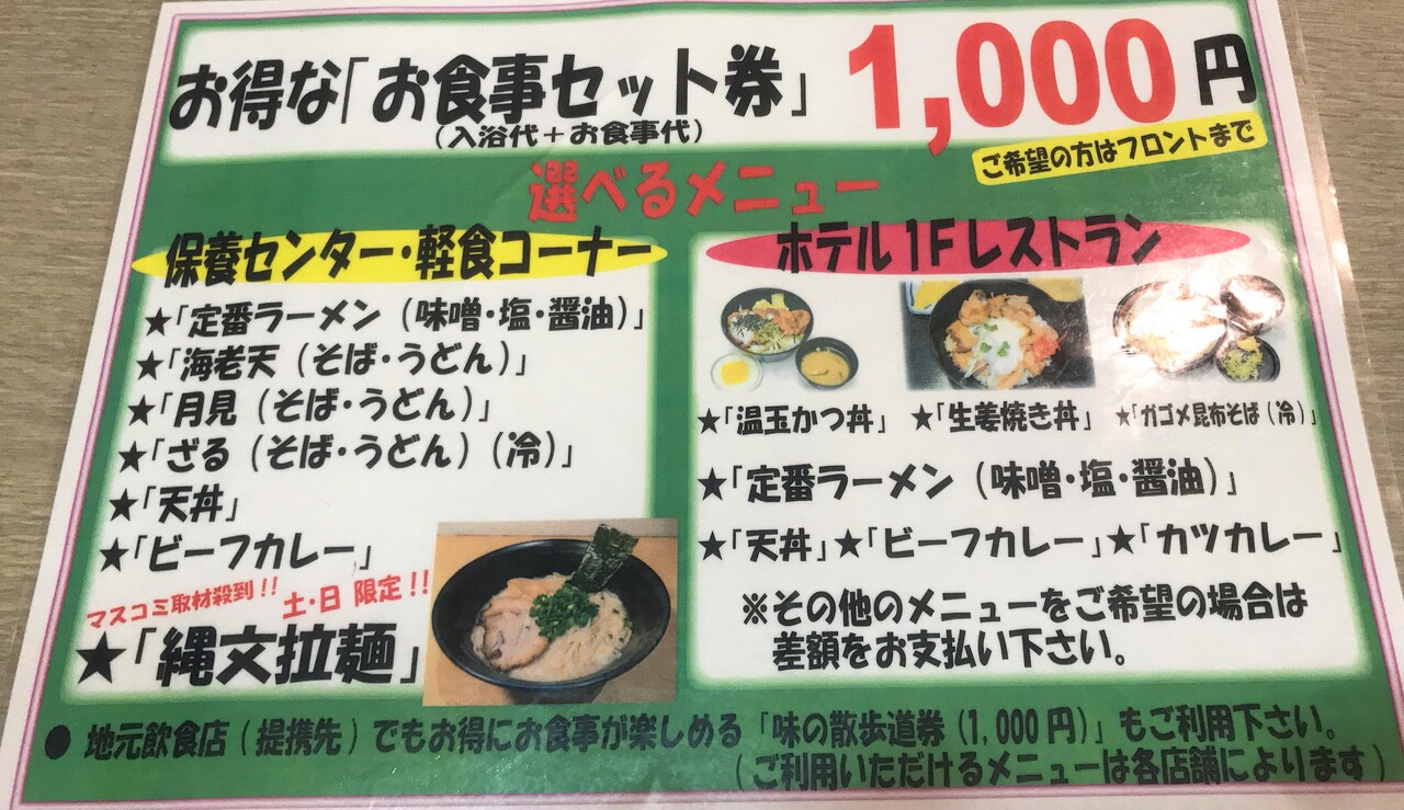 入浴代と選べる食事がセットになった お食事セットは1000円。