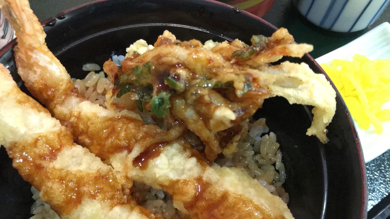 天丼のエビが、衣偽装しておらず美味。