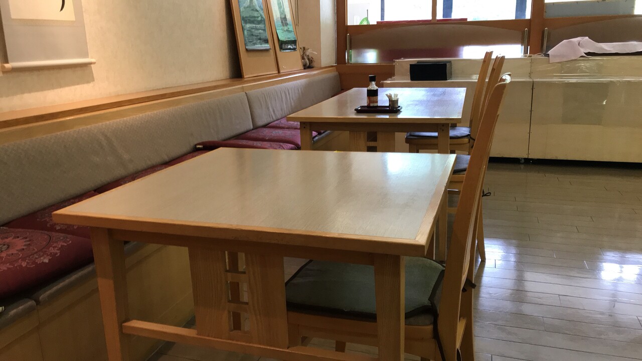 店内はテーブル席が広々と設置されています。