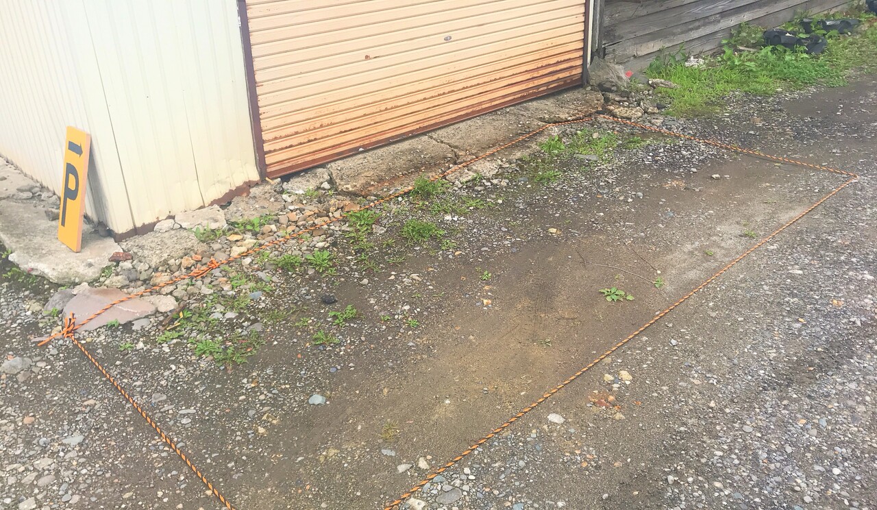 店の右横には、トラロープで仕切られた1台分の駐車スペース。