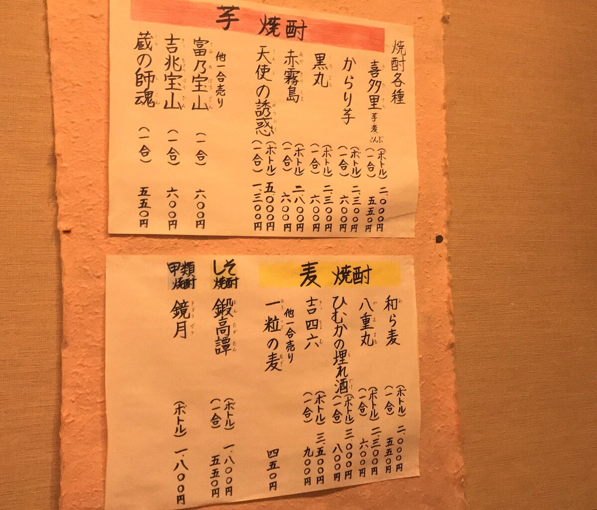 別料金になりますが、上の画像のような焼酎各種も取り揃えています。