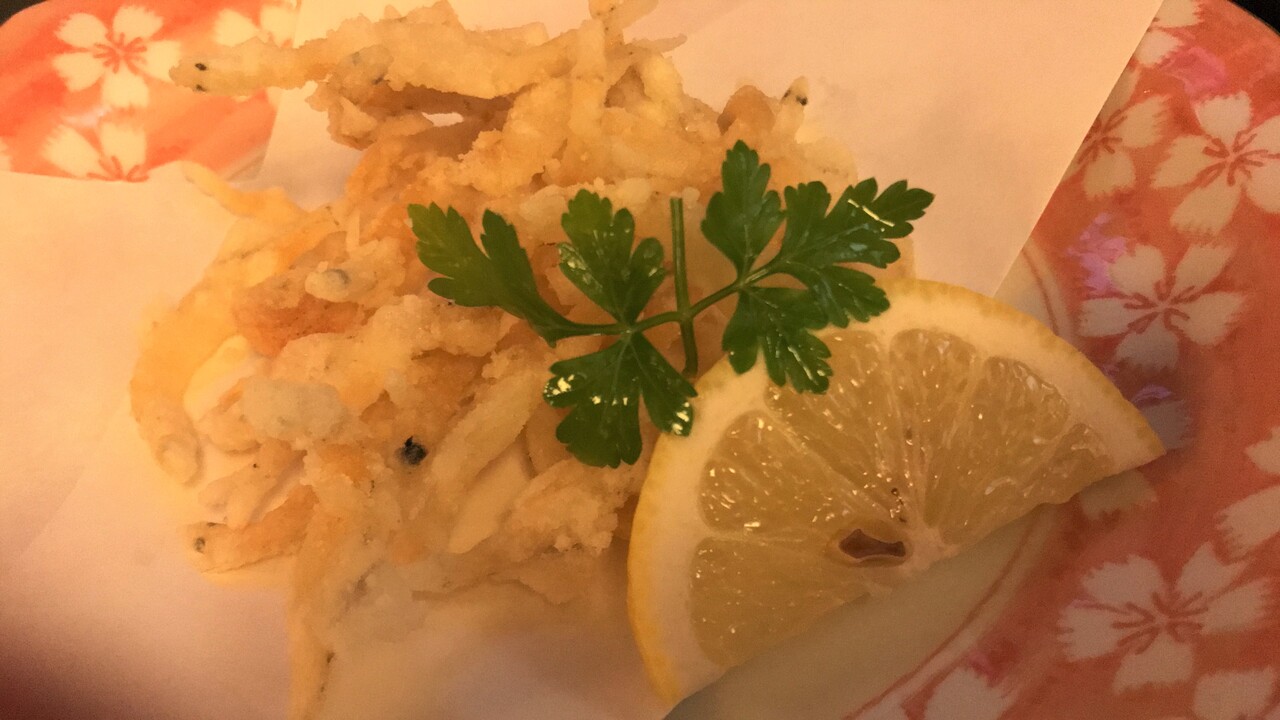 珍しさで頼んだ白魚のかき揚げ。