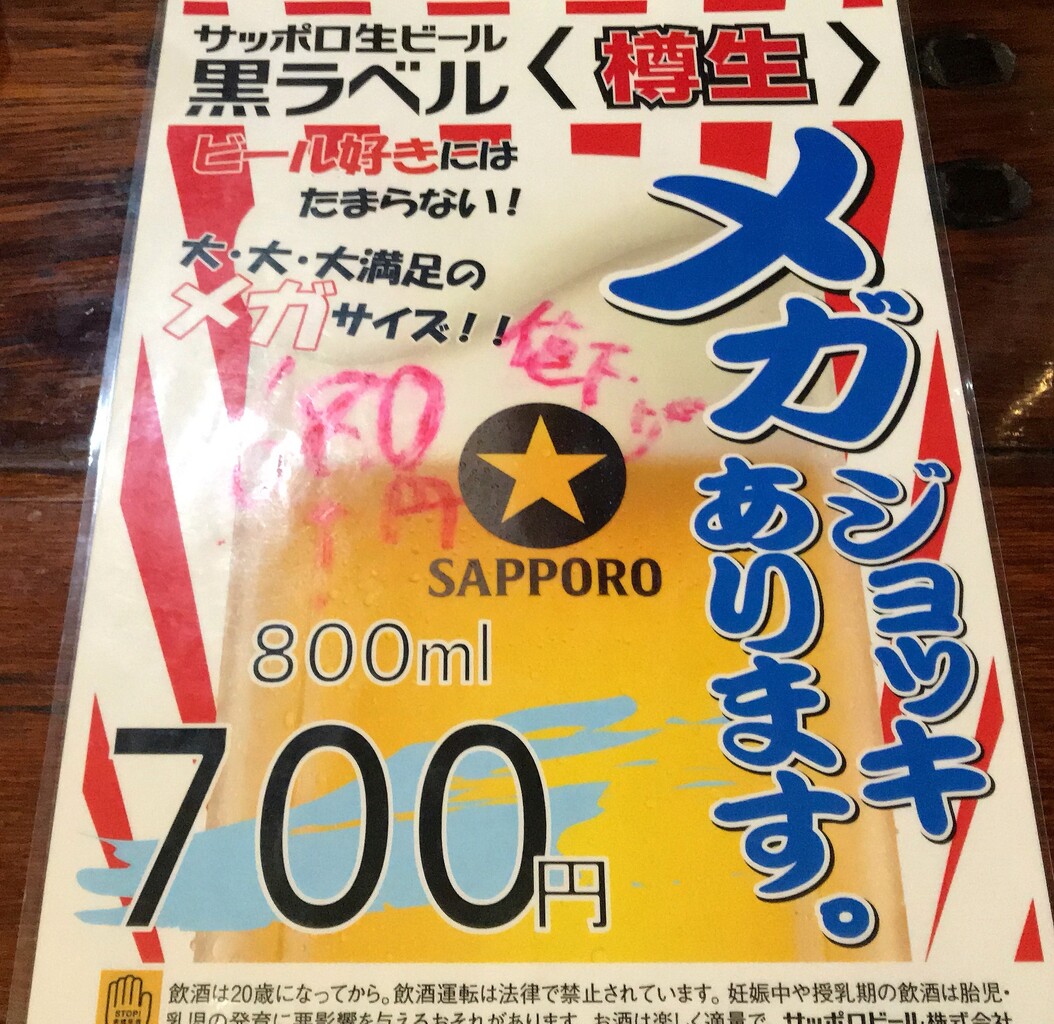 生ビールのメガジョッキ680円を注文。
